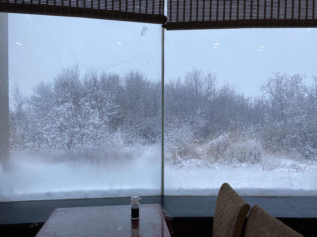 开车十分钟就到了古海温泉,据说古海温泉水龄有7.7亿年,水中富含微量元素,当天晚上住宿在古海温泉酒店,泡温泉就是免费的。至于泡温泉的感受,大概就是“冰火两重天”吧。晚上室外温度有零下二十度,温泉池是42度。头发结冰,脸上出汗,现在想想也是受罪的体验。第二天上午小伙伴儿们兴致未足又去泡了。我是不愿意去,窝在房间里整理照片视频。房间里因为是地暖,温度很高。感觉在室内穿短袖都没有问题呢。