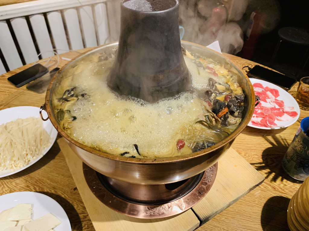 晚饭就选了方便的土火锅,别说味道真的是蛮不错的。骨汤熬制的汤底,碳火火锅架上,配上农家粉丝,白菜,土豆,牛肉,几个人吃的热火朝天。如果觉得不够还可以让民宿大叔给炒上几个家常菜。