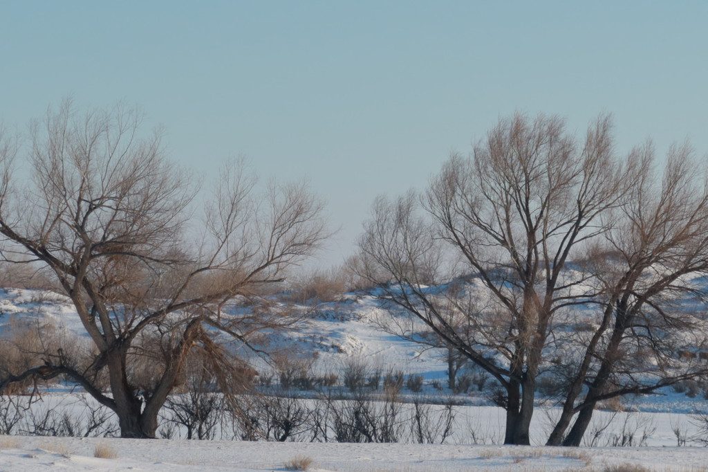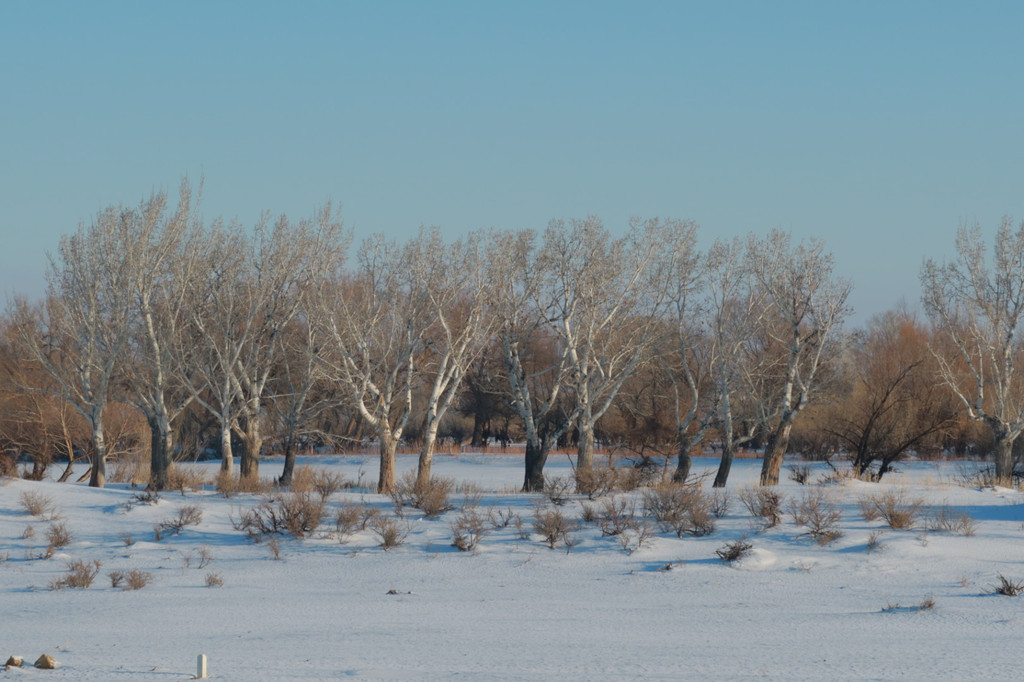 看了指示牌才知道它有个很好听的名字——月牙湾。其实它并不难找,就在古海温泉十分钟车程的地方。不知道是不是因为冬季萧索路程不好走,并无人发现这一处美丽的存在。好似被遗忘的角落。