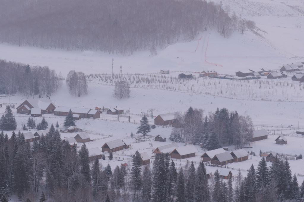 观景台不高,不费力气就上去了,等着看日出的人不多,因此失望的人也不多。因为左等右等都没能等到日出。但它整体还是美丽的。整个禾木村都在我的镜头里,拿着相机左拍右拍前拍后拍,好像怎么拍都很好看,又好像怎么拍都拍不出它实际的美。