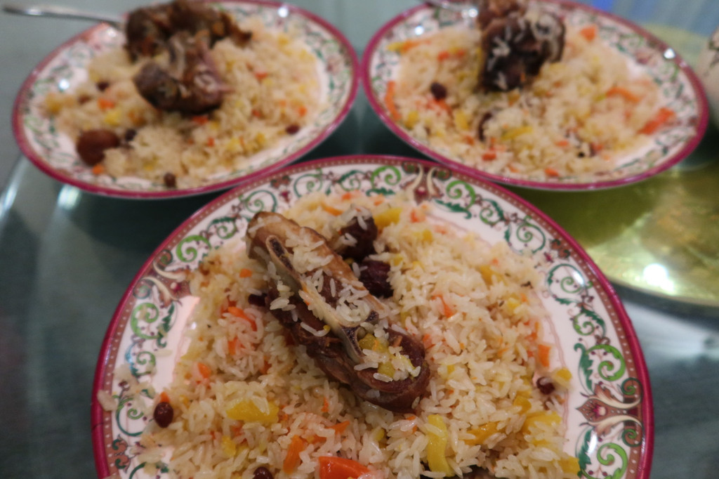 手抓饭是用羊排蒸出来的,搭配鲜甜的黄萝卜,胡萝卜,葡萄干,杏干,非常的吊人胃口。
