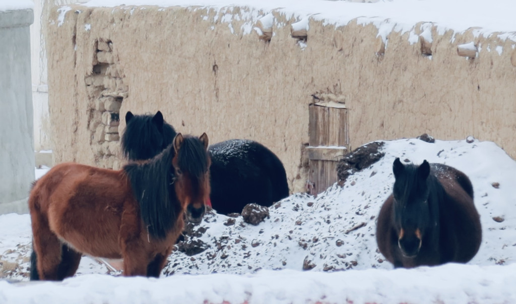 这些人家都在雪山脚下,我不禁幻想,他们平日里的生活是怎样的。