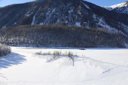 自驾于可可托海景区,你会惊叹于路上遇见的一切,雪在冰上作画,冰在河面上作画,而这些都在你眼睛里作画。