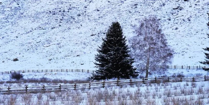 冬季布尔津喀纳斯景区褪去了秋日绚烂的色彩与喧嚣,纯净的像是童话世界,大雪覆盖满山松针林木,从山巅一直蔓延到山脚,每一眼都是惊艳。