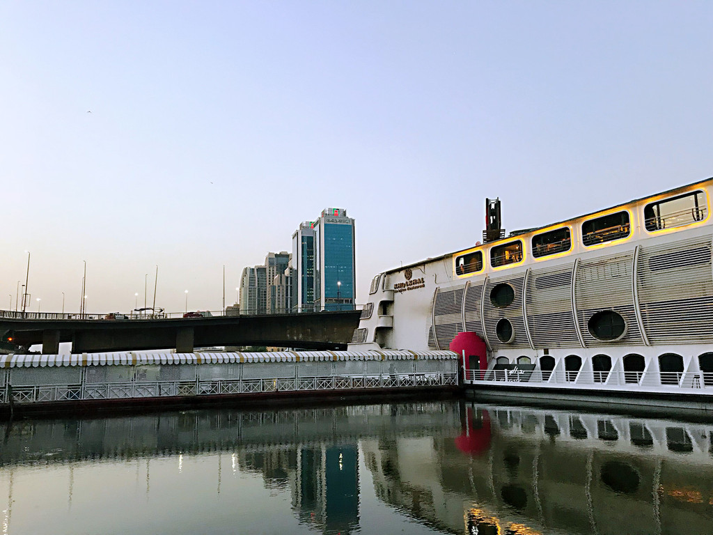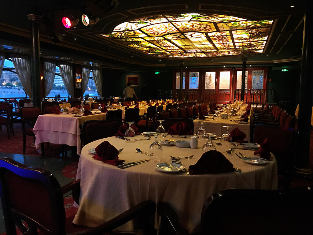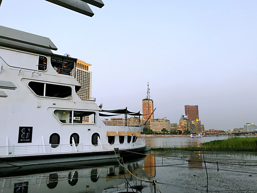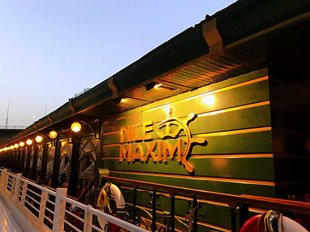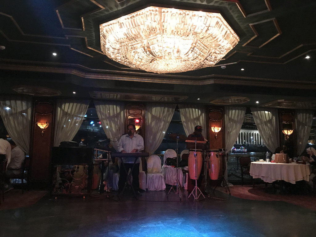 尼罗河上的游船不少,埃及的中资企业朋友早就为我们订好了座位,上船时游船的经理笑着说给每次这家中资企业留的位置一定是最好的位置。接着我们四人被引导到正面对舞池第一排唯二中的一桌,果然是最好的位置。我们四人算是到的比较早的,随后陆陆续续的有游客落座,除我们之外,还有一组来自中国的游客,其余的都来自西方或是埃及本地。