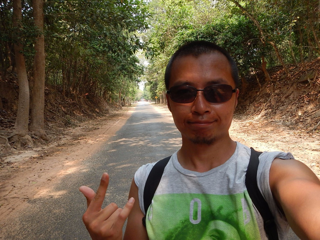 路牌上指着吴哥往前。好吧我继续往前走 ,已经从酒店出来走了大概1小时了。40度的高温啊,一直喝水,流汗,喝水,流汗。心中想着已经走这么远了,应该马上就到了啊。