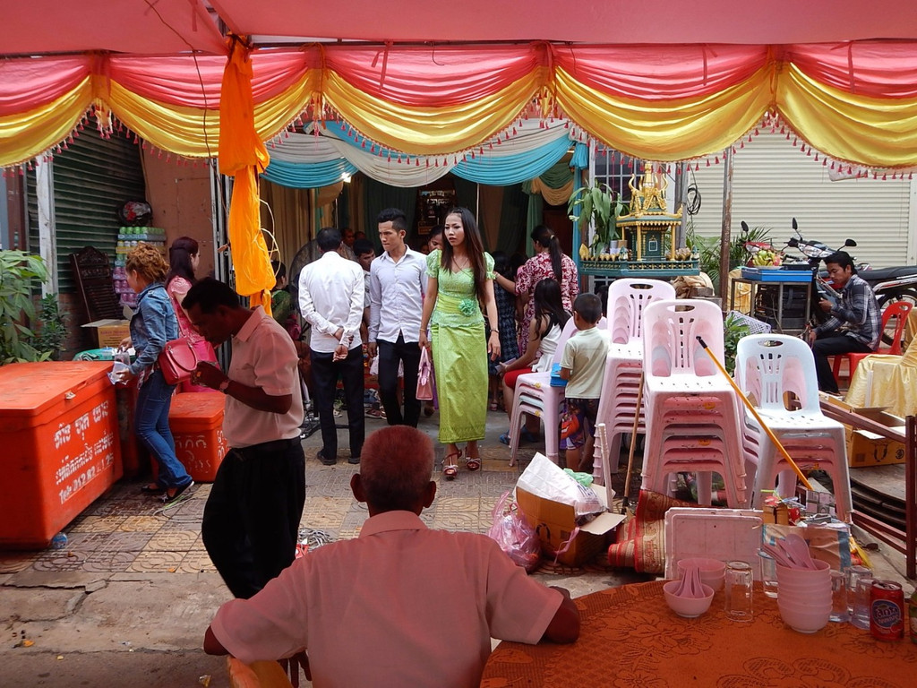 把小卡片凑到大棚的缝隙,拍了一张内部的情景。好像 中国 的流水席。弄的还是挺漂亮的。