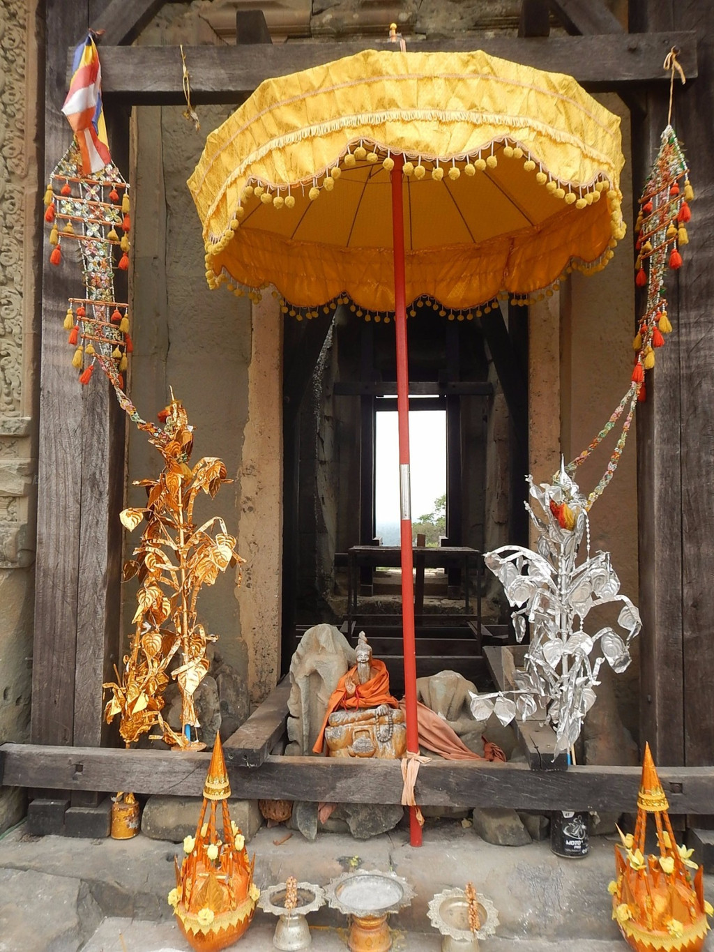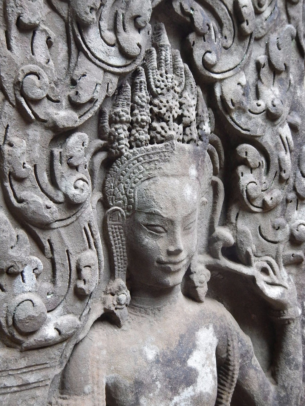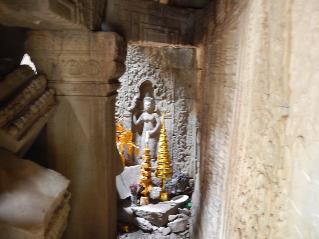 在吴 哥里 ,经常有穿制服的人,会跟你说你想去看女王吗?然后你要说看,他就会带你钻入一般人不知道的遗址缝隙。根本没有路。转啊转,就来到这么一个地方。供奉的是这座遗址曾经供奉的女皇。当然我知道是要给小费的,给了1美金,然后这个哥们会管你再多要一些,说为了要学英语。