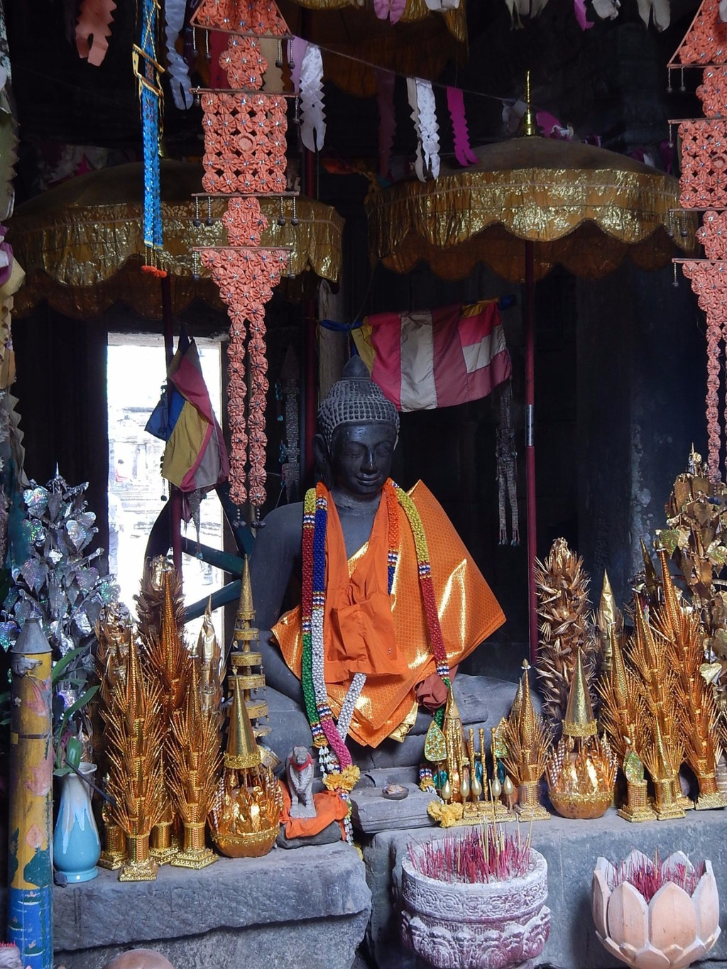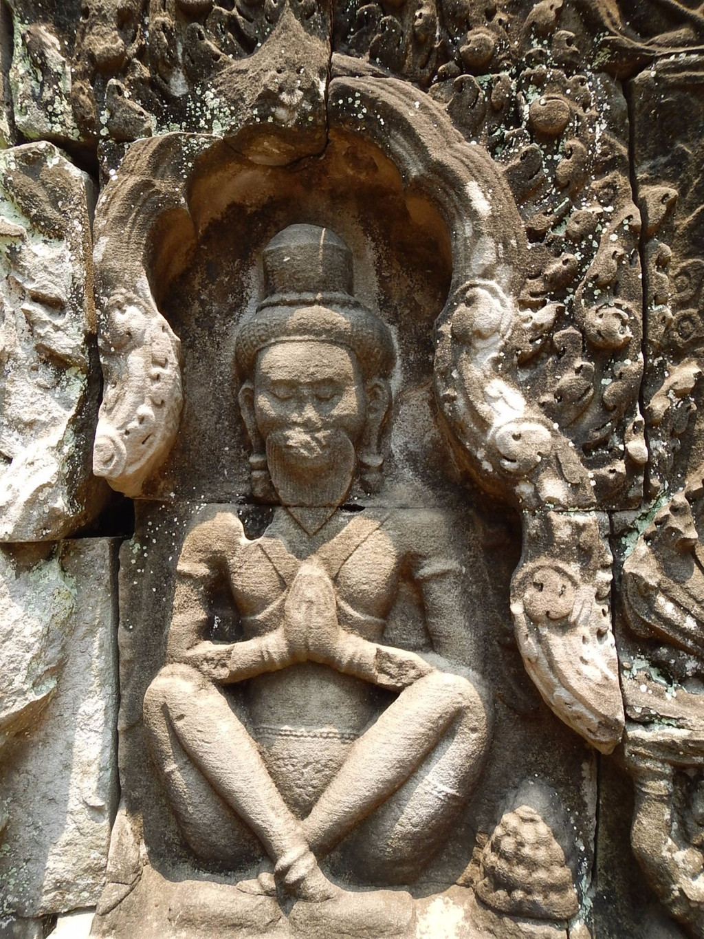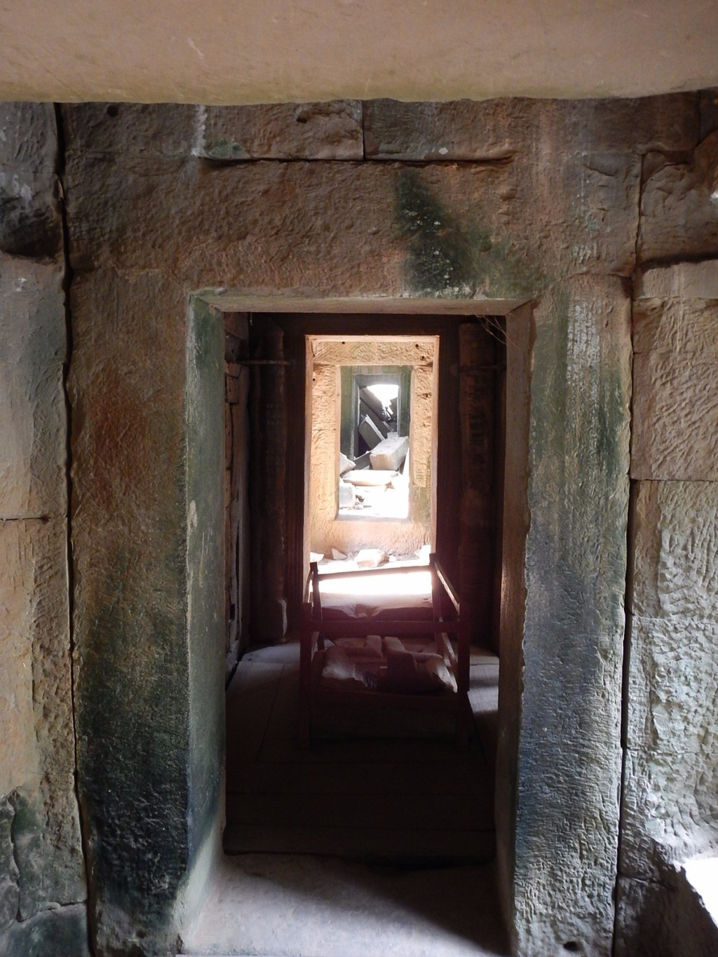 在吴 哥里 ,经常有穿制服的人,会跟你说你想去看女王吗?然后你要说看,他就会带你钻入一般人不知道的遗址缝隙。根本没有路。转啊转,就来到这么一个地方。供奉的是这座遗址曾经供奉的女皇。当然我知道是要给小费的,给了1美金,然后这个哥们会管你再多要一些,说为了要学英语。