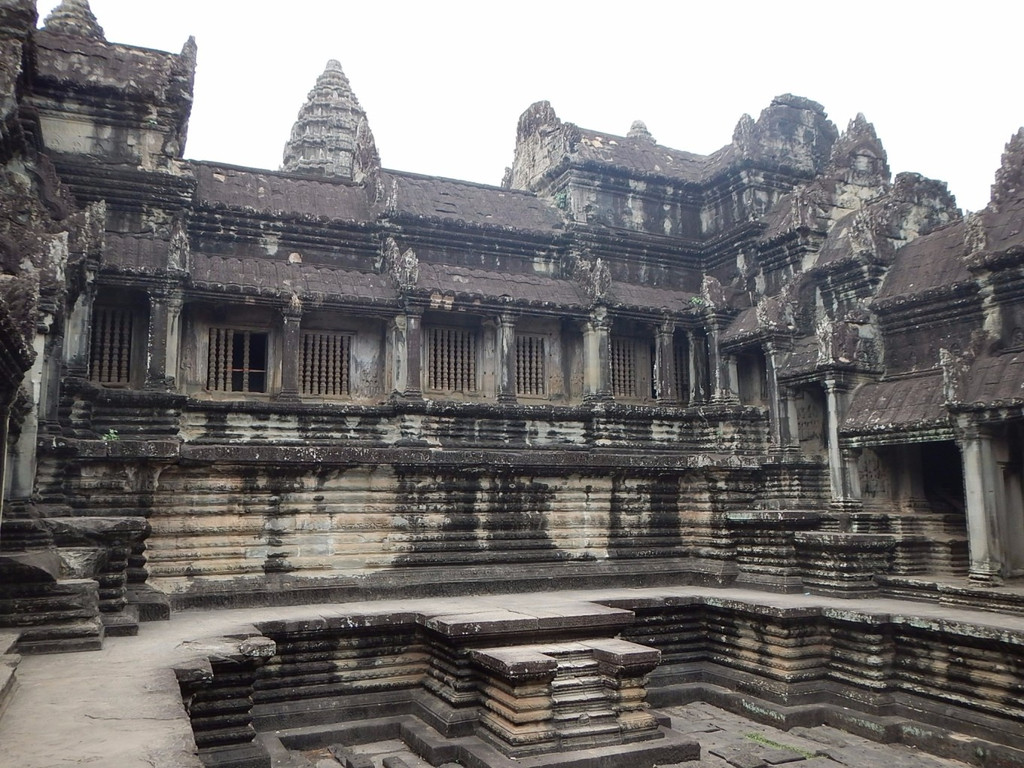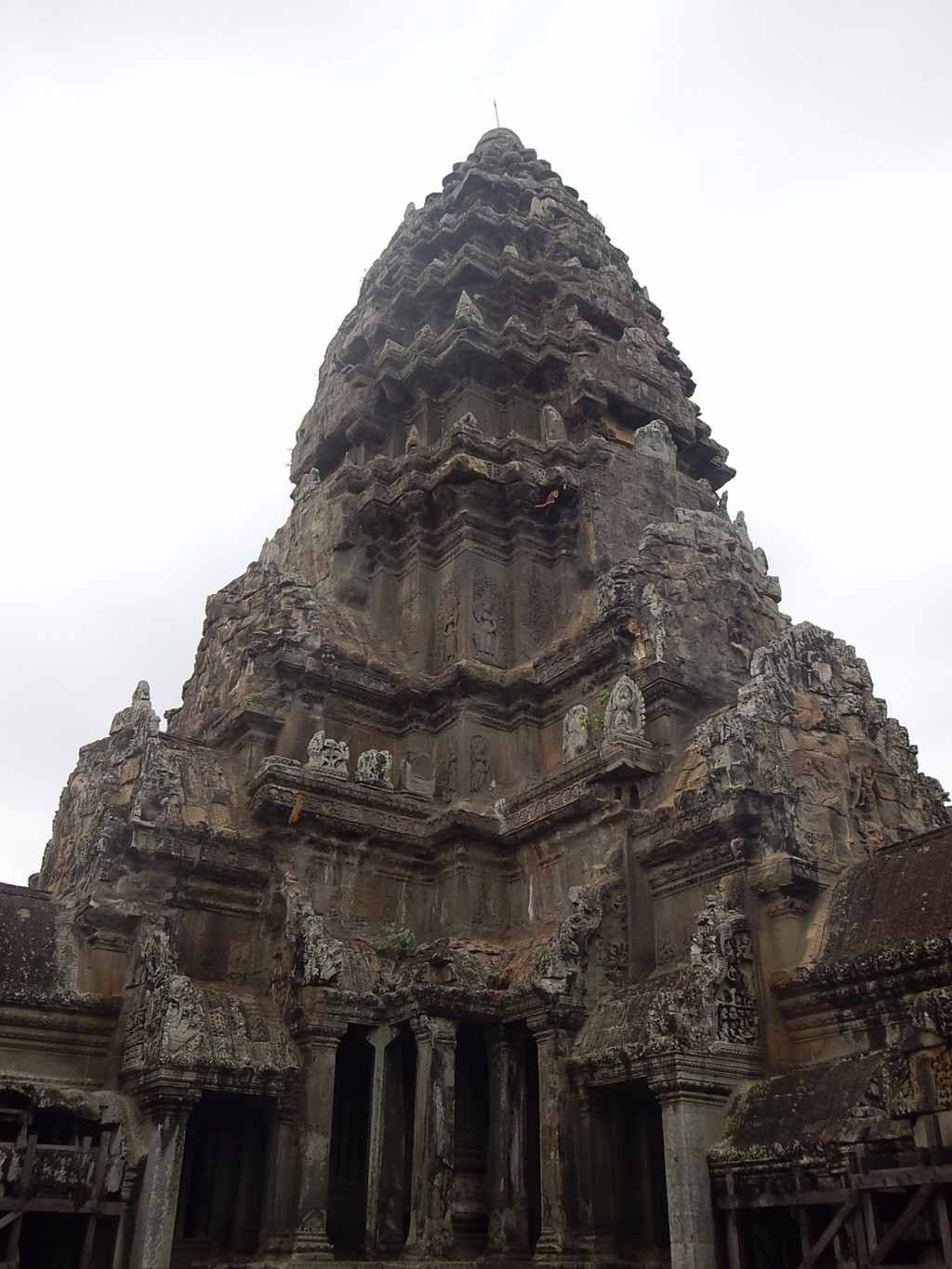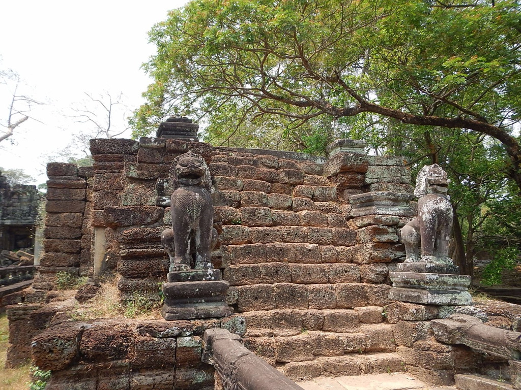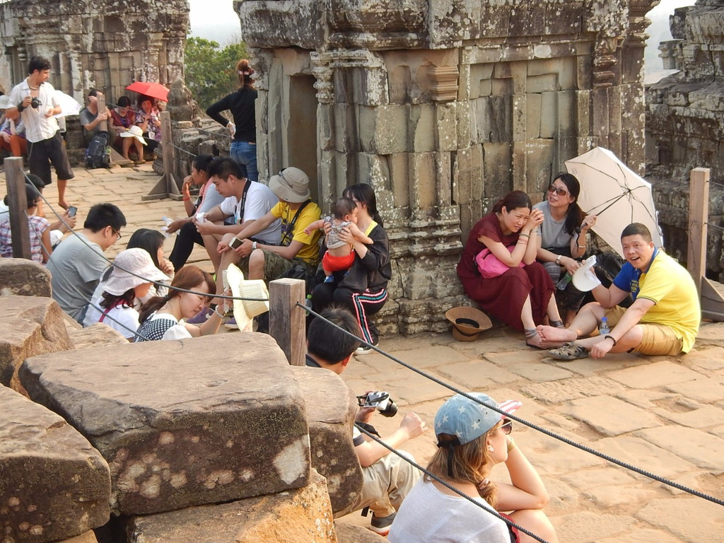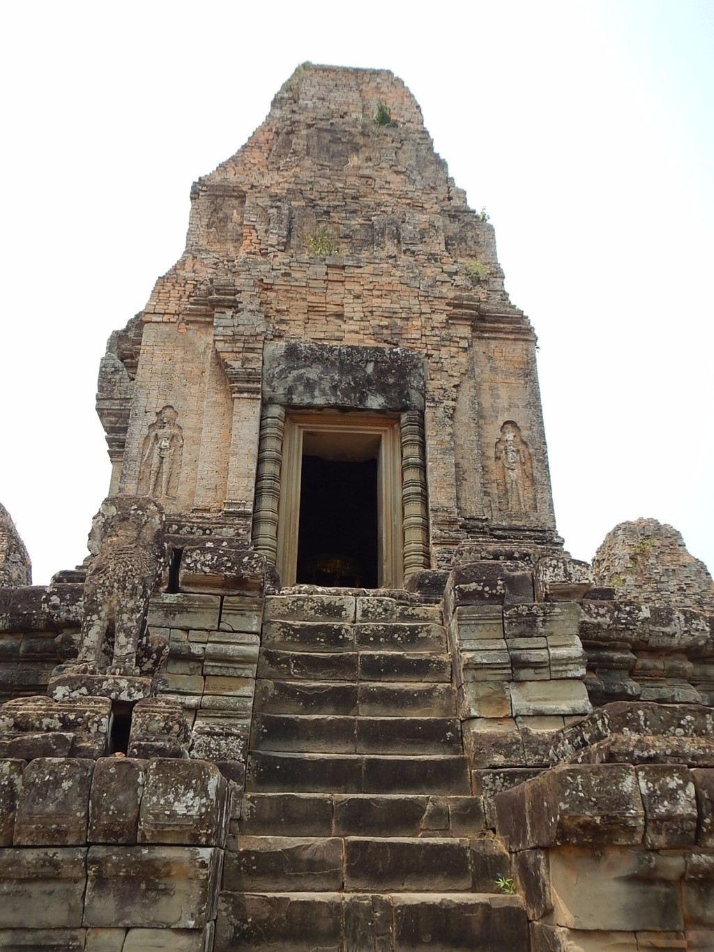 小吴哥中心部位有一高塔,可以登顶,非常陡峭,另外登顶的话对着装是有要求的,在吴哥其他部分,如果吊带热裤都没问题,如果上这个塔必须不能穿的太少,短裤如果太短是不能上去的。