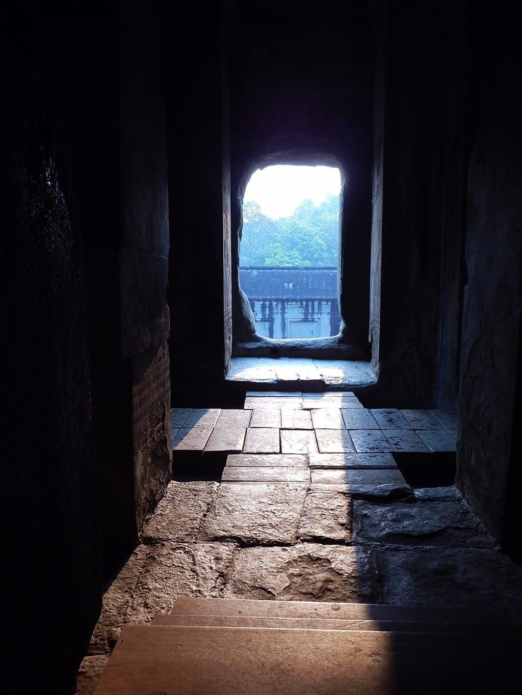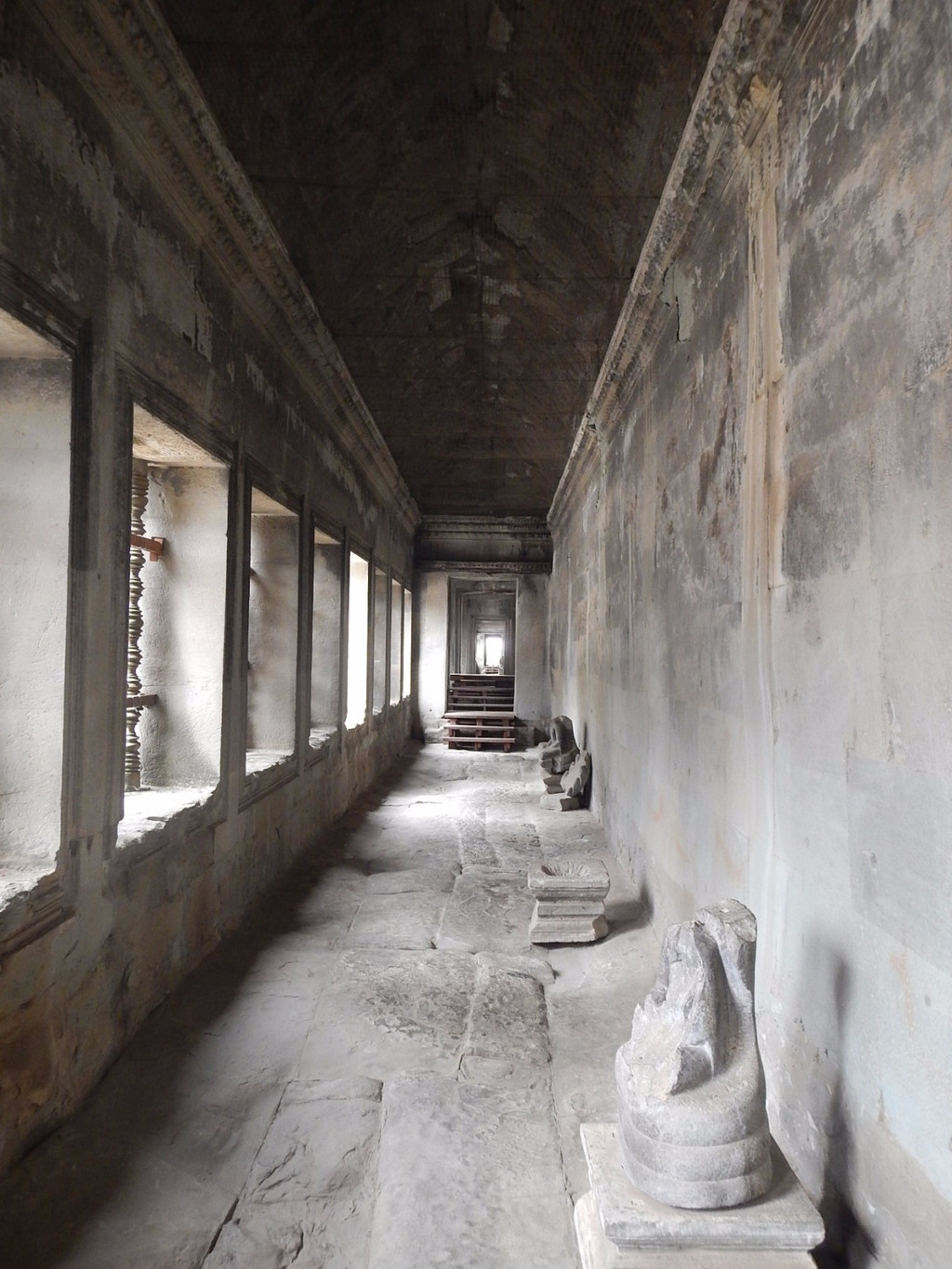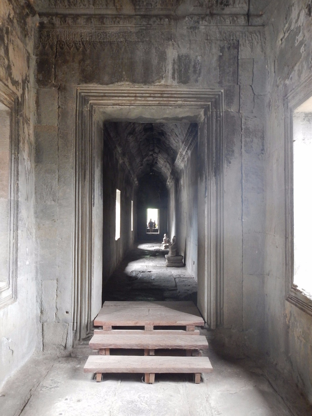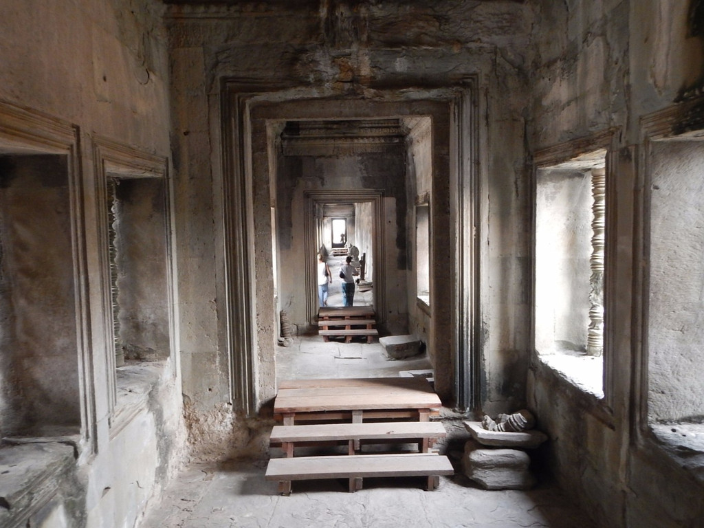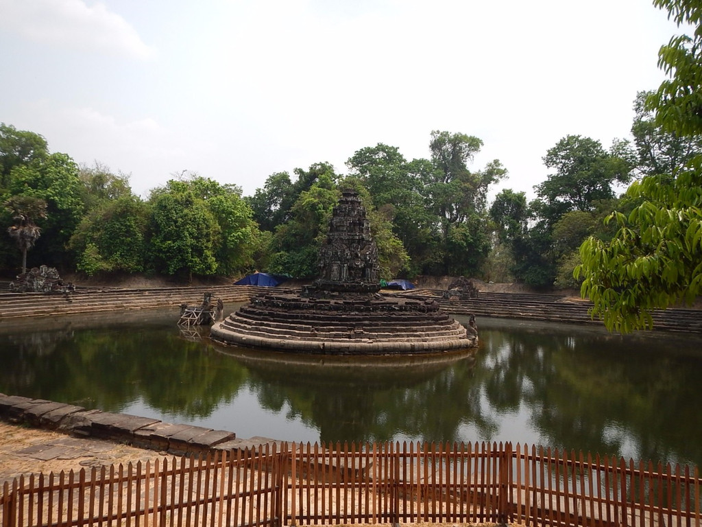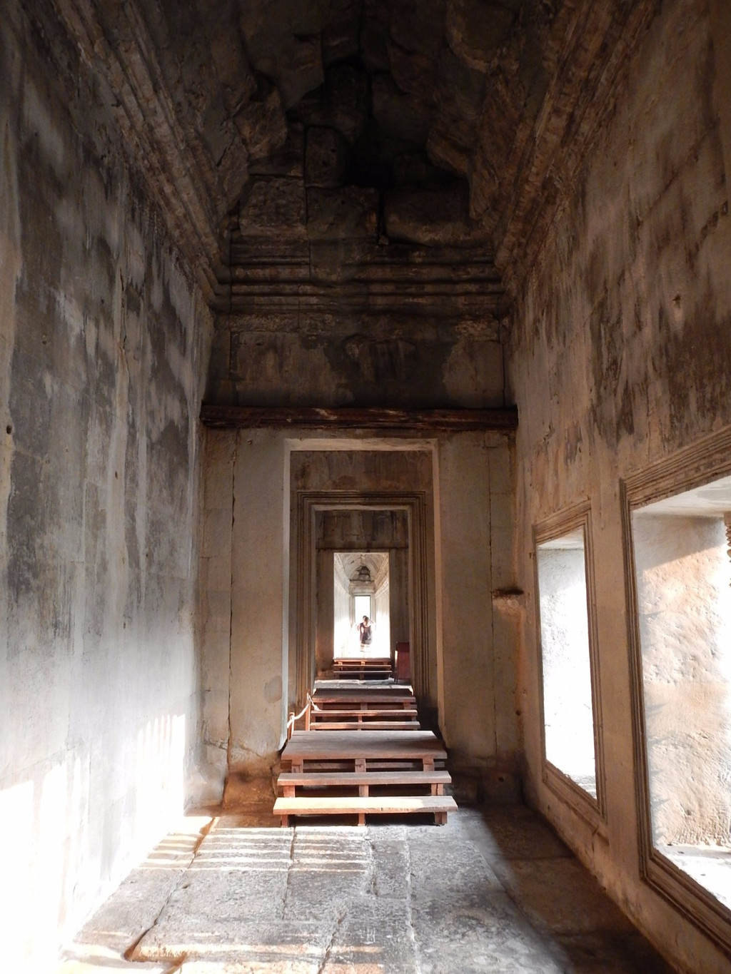 小吴哥中心部位有一高塔,可以登顶,非常陡峭,另外登顶的话对着装是有要求的,在吴哥其他部分,如果吊带热裤都没问题,如果上这个塔必须不能穿的太少,短裤如果太短是不能上去的。