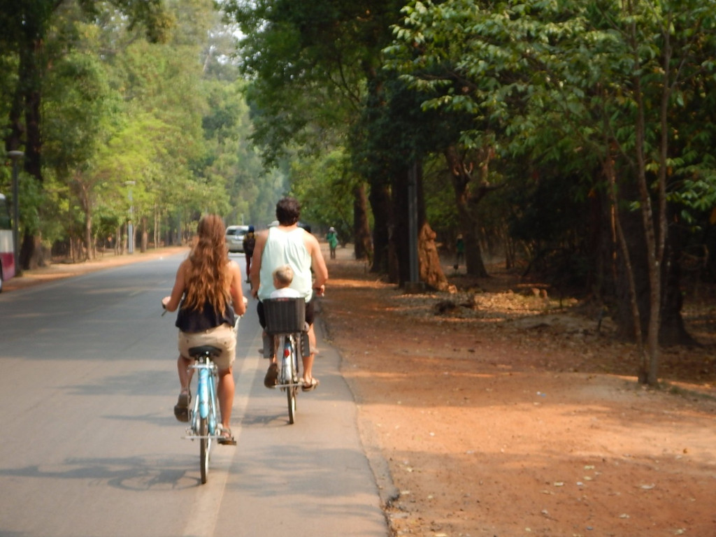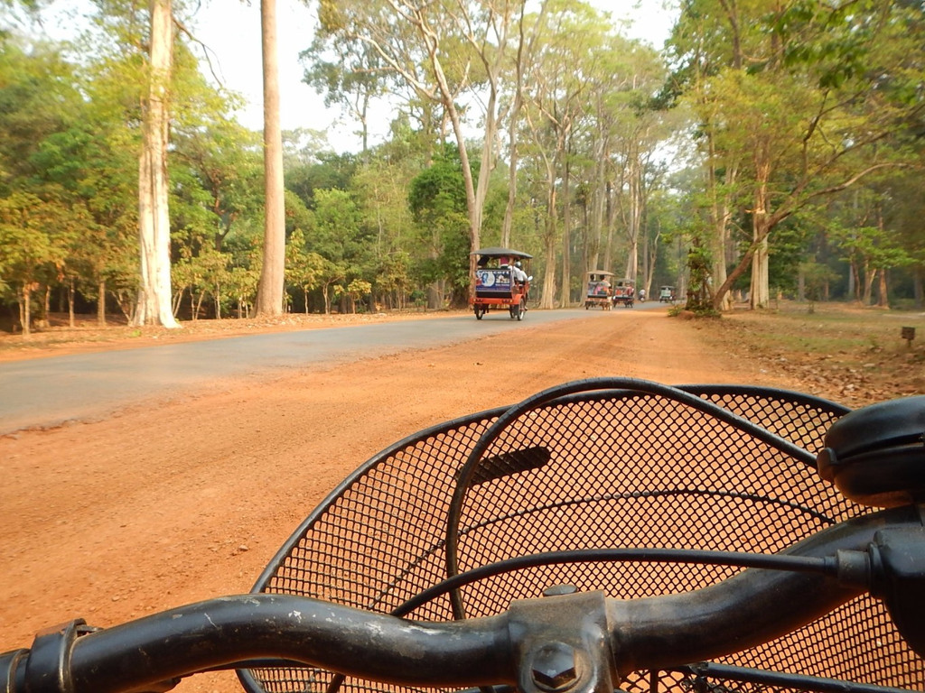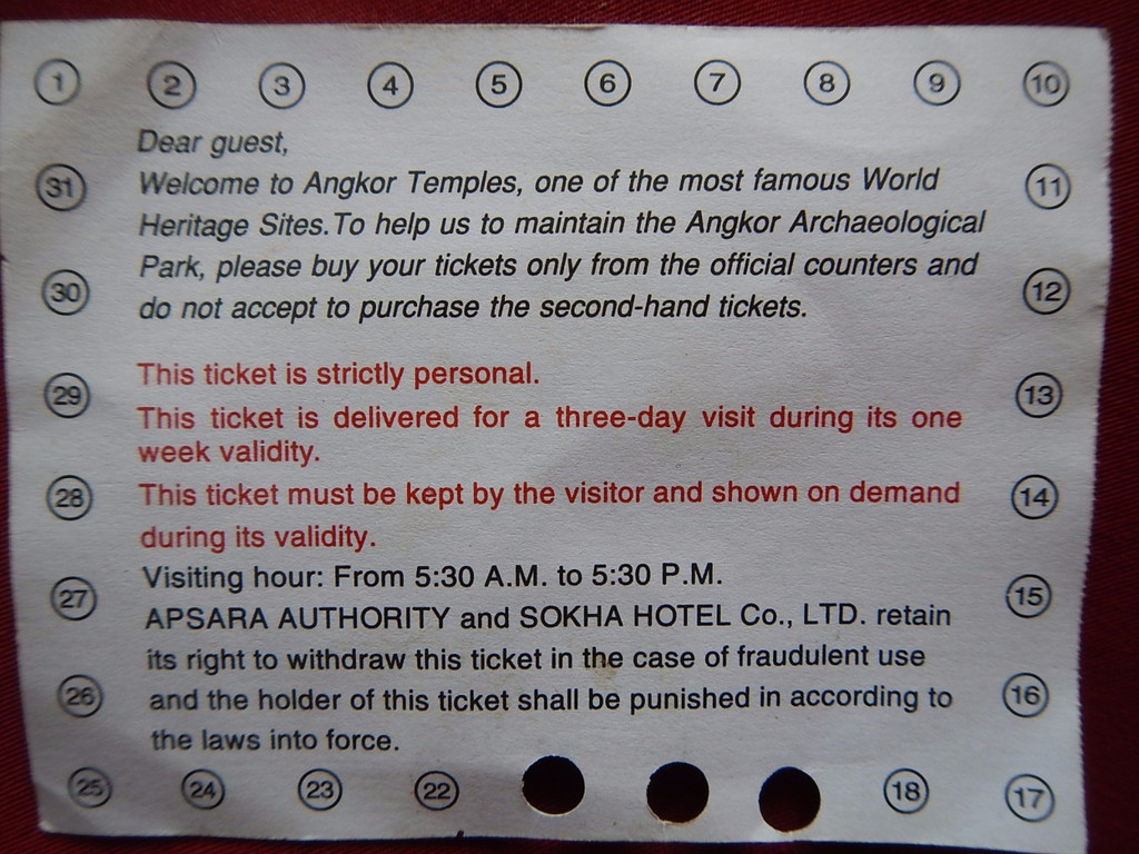吴哥正式游览第二天由于日出已经看完,今天不必早起,大概7点30出了酒店,骑着我的自行车,继续出发去吴哥,大家一定记得要把票带身上,我买的是40美金3天的票,每天打一个洞。进入景点时会有人查票。