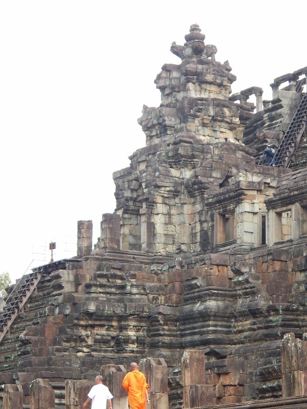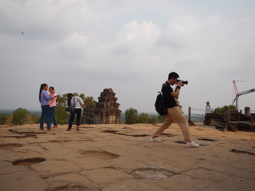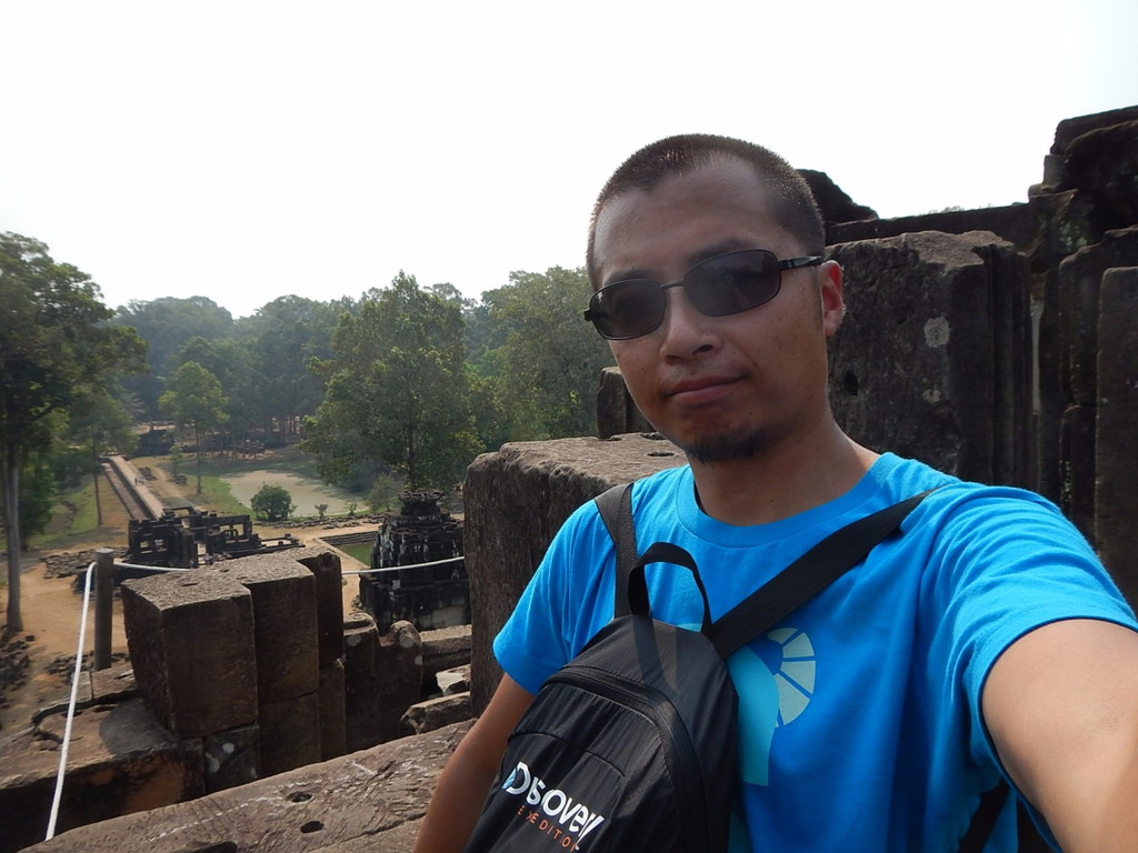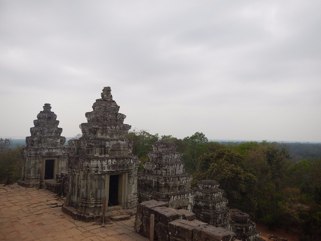 山顶上有一寺庙,拾级而上,俯瞰整个吴哥,就是天气不好啊,视野受阻,另外很担心日落还能不能看到了。