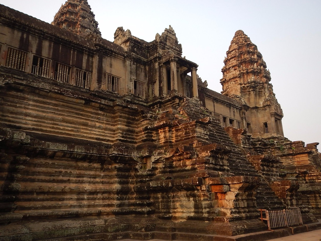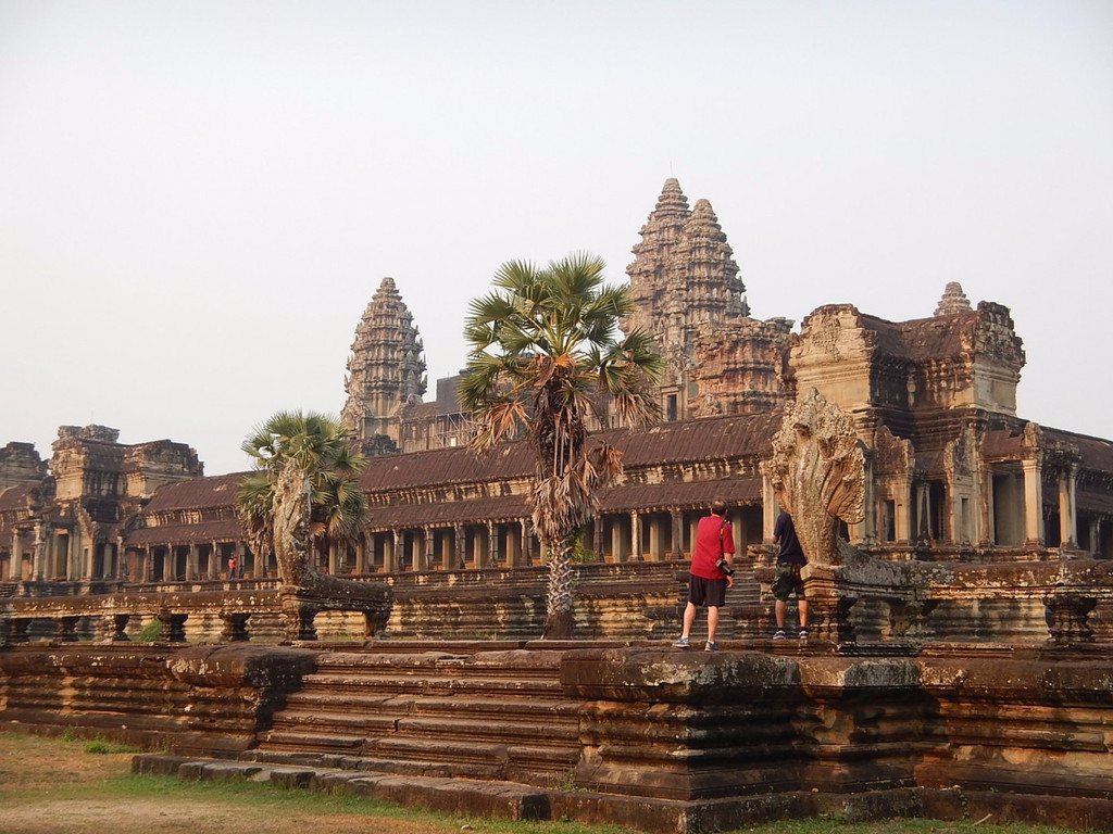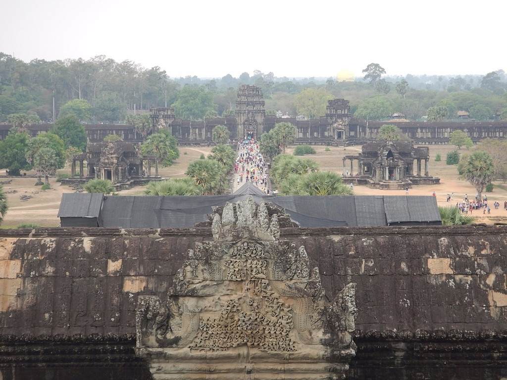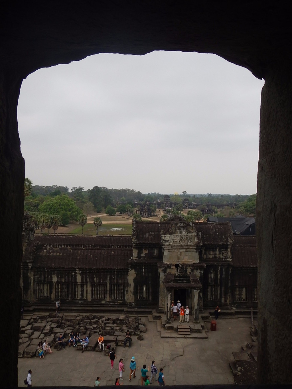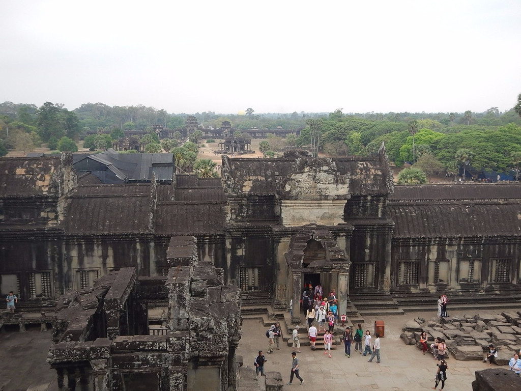 山顶上有一寺庙,拾级而上,俯瞰整个吴哥,就是天气不好啊,视野受阻,另外很担心日落还能不能看到了。