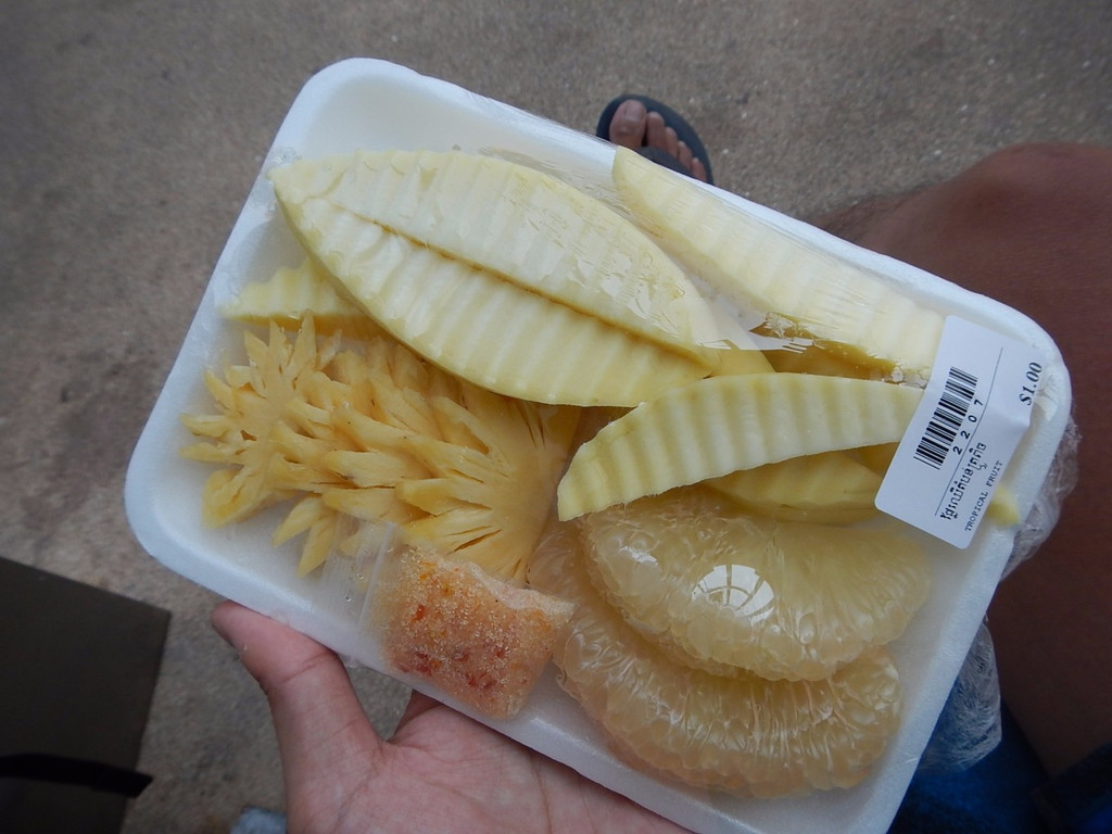 东南亚 好多水果都是这么吃的,那个调料包,马来, 泰国 都一样吃法,沾着吃,咸咸的又有一点辣一点甜。