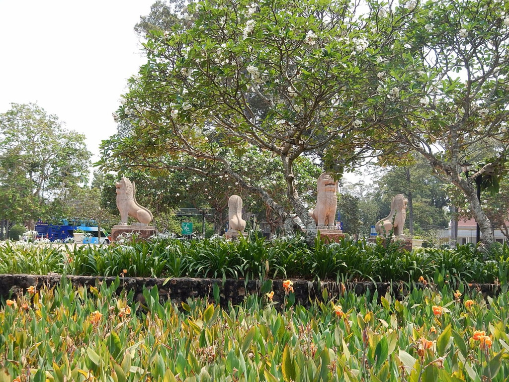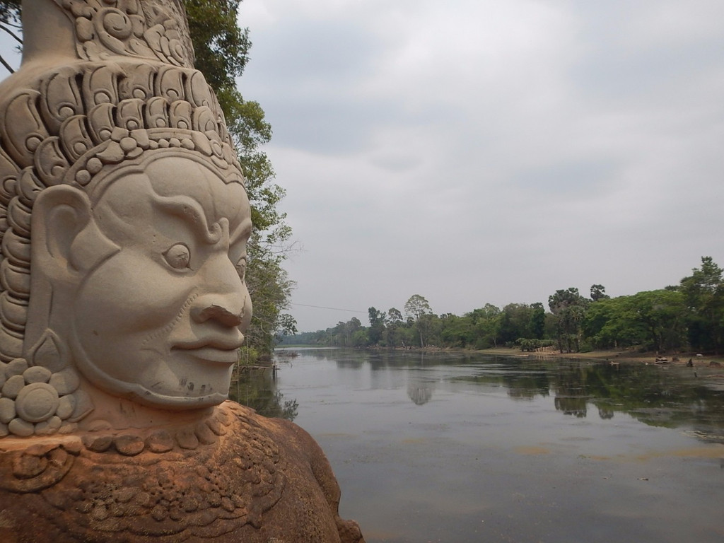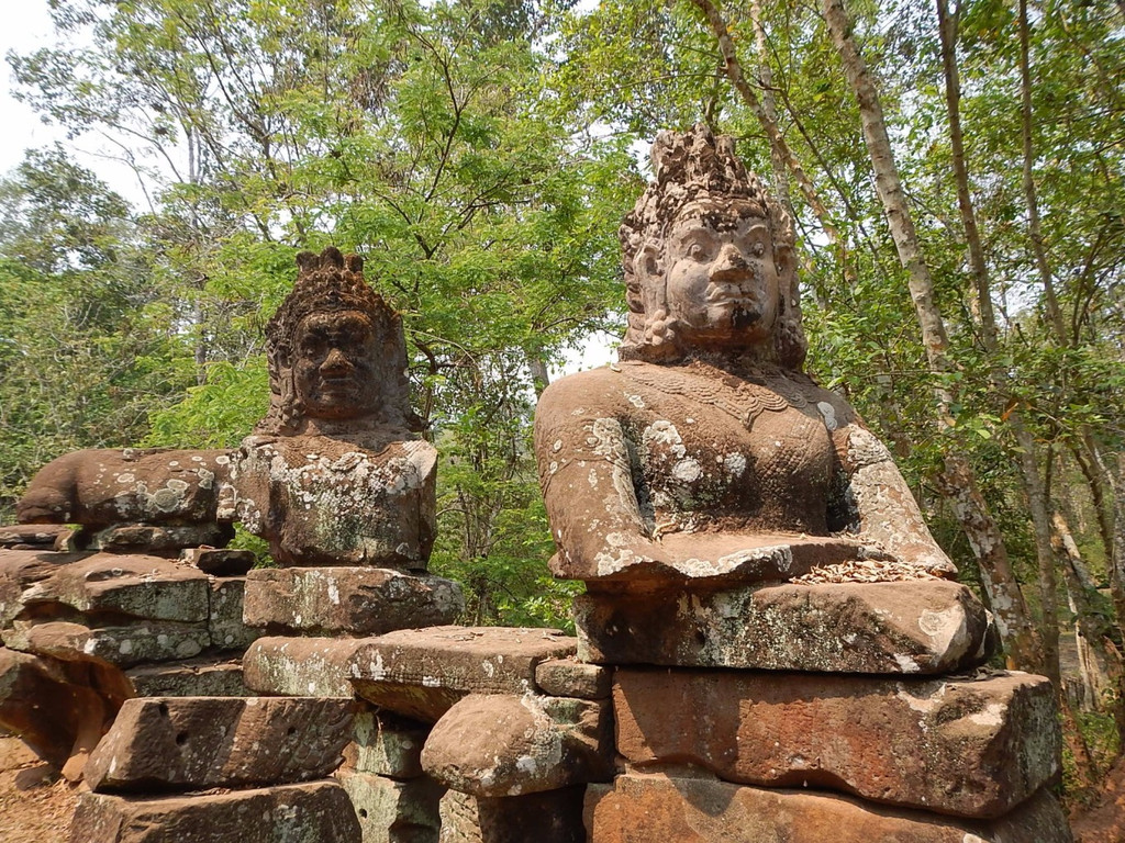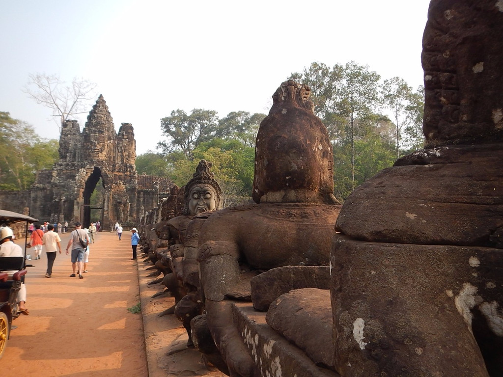 过多的相关吴哥文化知识,什么哪个年代,哪个君主我就不介绍了。写了半天您一看而过也记不住,如果敢兴趣可以买本关于吴哥的书,带在身上,一路走一路核对就好了。我想说的是这个街边雕像其实就是 吴哥窟 门口的雕像复刻版。