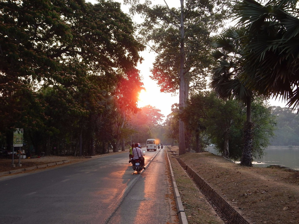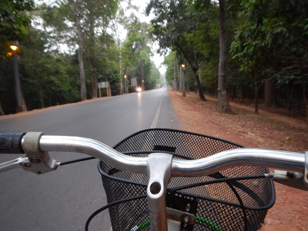 工作人员说明天早上5点半就上班了,明天一早就可以来买票。我是想着要4点多就去占位置看吴哥日出的,哎!只好作罢!工作人员很好心,说你现在可以去吴哥,因为下班了没人收票了,天都快黑了,我去了有毛用啊,不过不甘心啊,得嘞!谢过人家我就往吴哥进发了。从售票处骑到小吴哥大概用时20分钟。--!