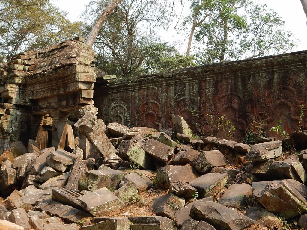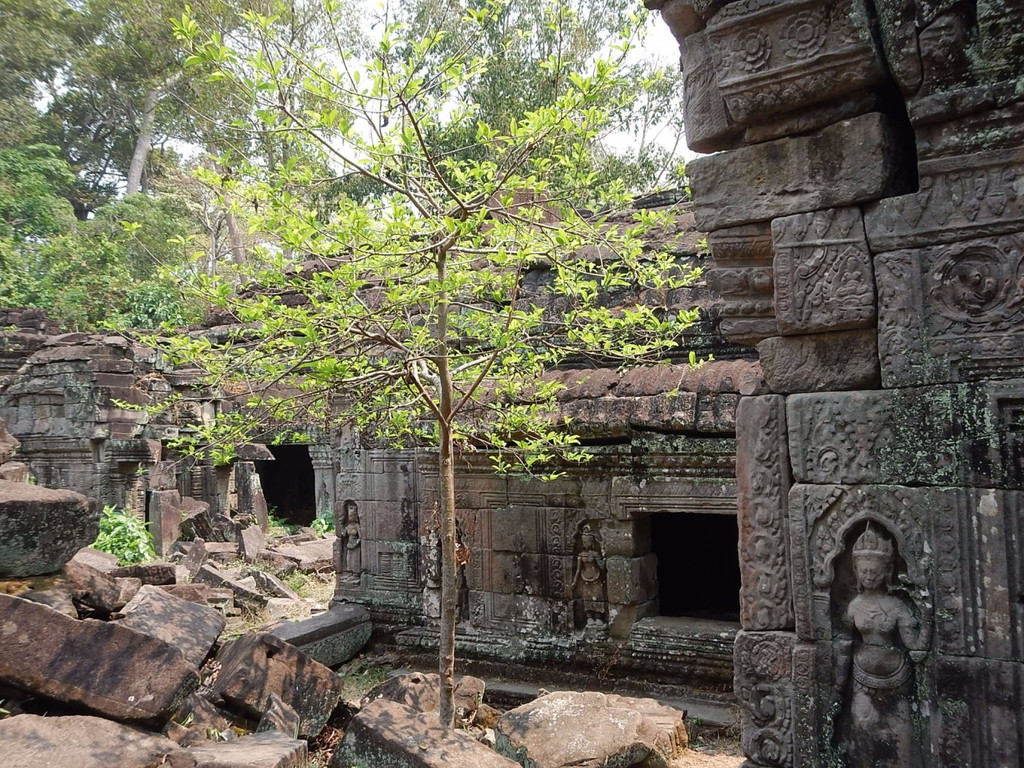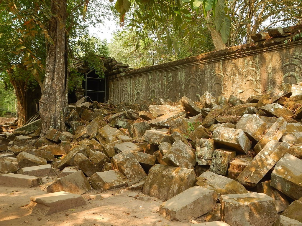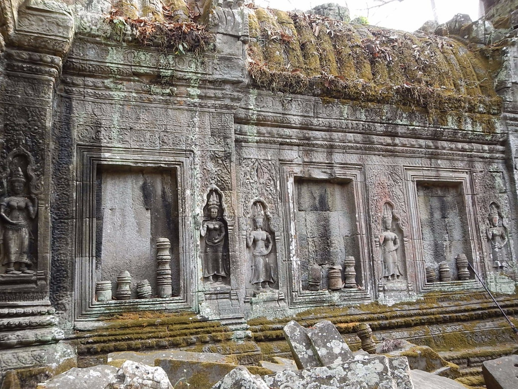 仔细看,全是佛脸啊。吴哥是户外的建筑,很多石块因为风化地震等自然灾害原因已经崩裂残缺了,趁着吴哥还在,尽量的去感受一下吧,如果有一天吴哥真的不在了,世界上的文化遗产就又彻底消失了一处。