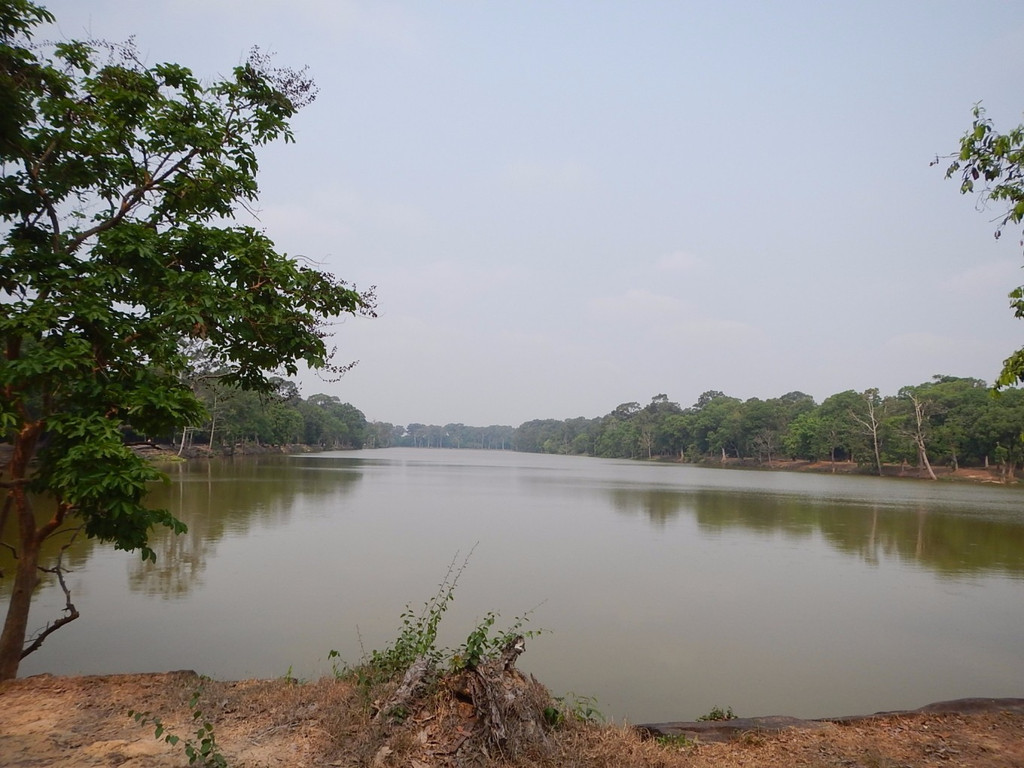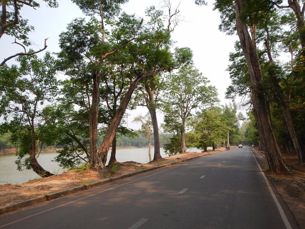 这里提醒一下大家。一般大家看地图,售票处是在南边,一般先去小吴哥也就是往左转,顺时针走,地图画的东西两侧回到南侧的距离差不多。但是实际走起来大圈东侧也就是顺时针1点到6点的这个距离远超过6点到11点的距离。大家做好心理准备啊。哈哈在不断的转弯以后,终于看到刚进入吴哥景区的那条河,感动的要哭!终于骑回来了。中间也有卖水和食物的,我是怕停下来就走不动了,所以坚持骑到这里,如果再多半个小时可能就要中暑虚脱了。