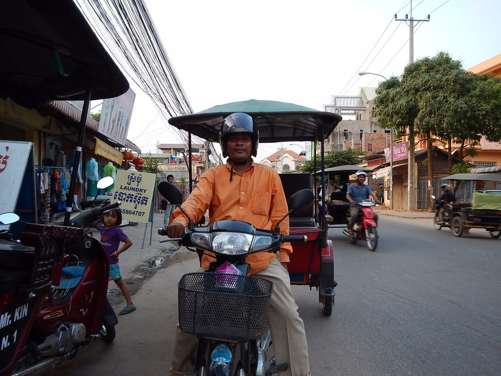 这大哥说他是有执照的,安全,说现在3月是 柬埔寨 最热的季节,骑自行车的话太累会中暑,可能自行车会被偷,吧啦吧啦。。。。我这人太不会拒绝。最后大叔说这样吧,你考虑考虑,明天我早上来找你,但是除了7美金的车费,我收3美金做押金吧。我说行啊。我考虑考虑。然后各自散去。