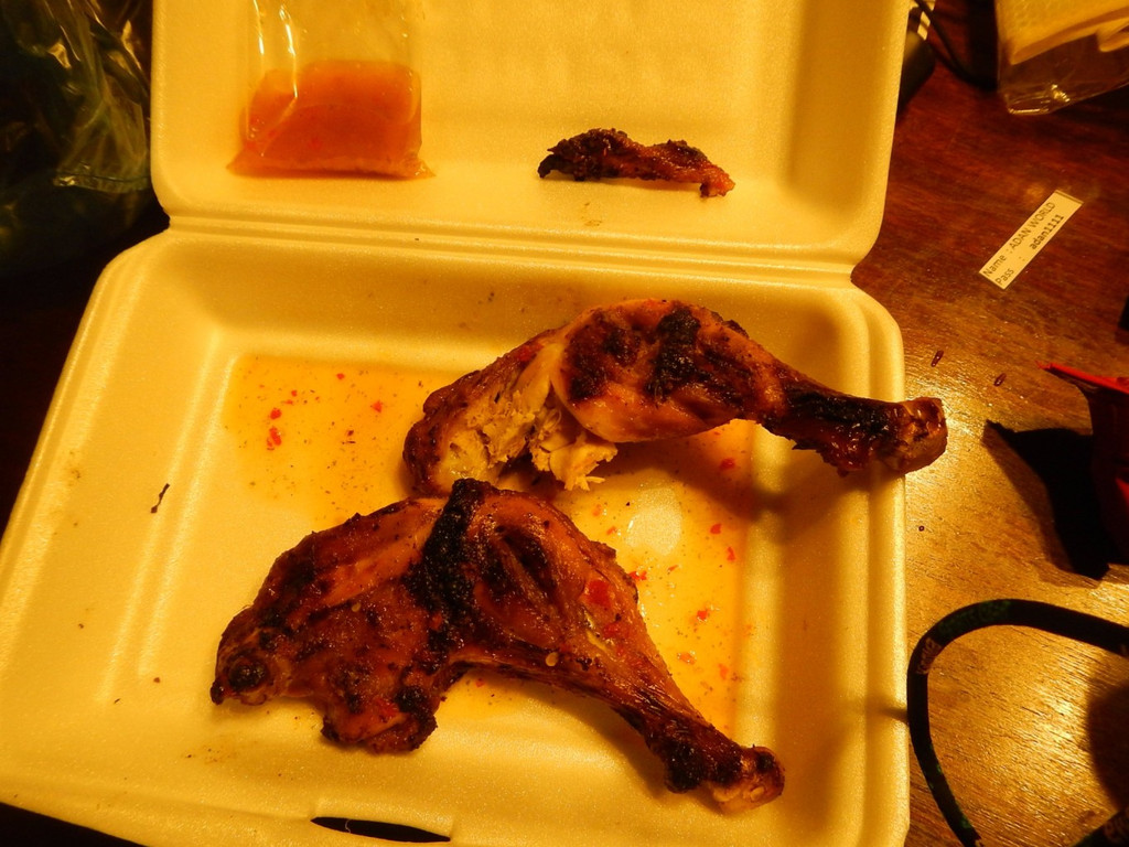 晚上在街头买了2个大鸡腿犒劳一下自己。味道还不错!可能是太饿了。
