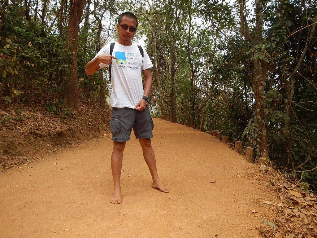 已经光脚走了一上午,渐渐不习惯穿人字拖了,虽然都是碎石,但是不致于把脚划破。体会一下我心狂野。下山!