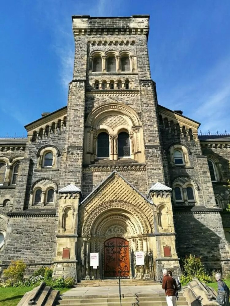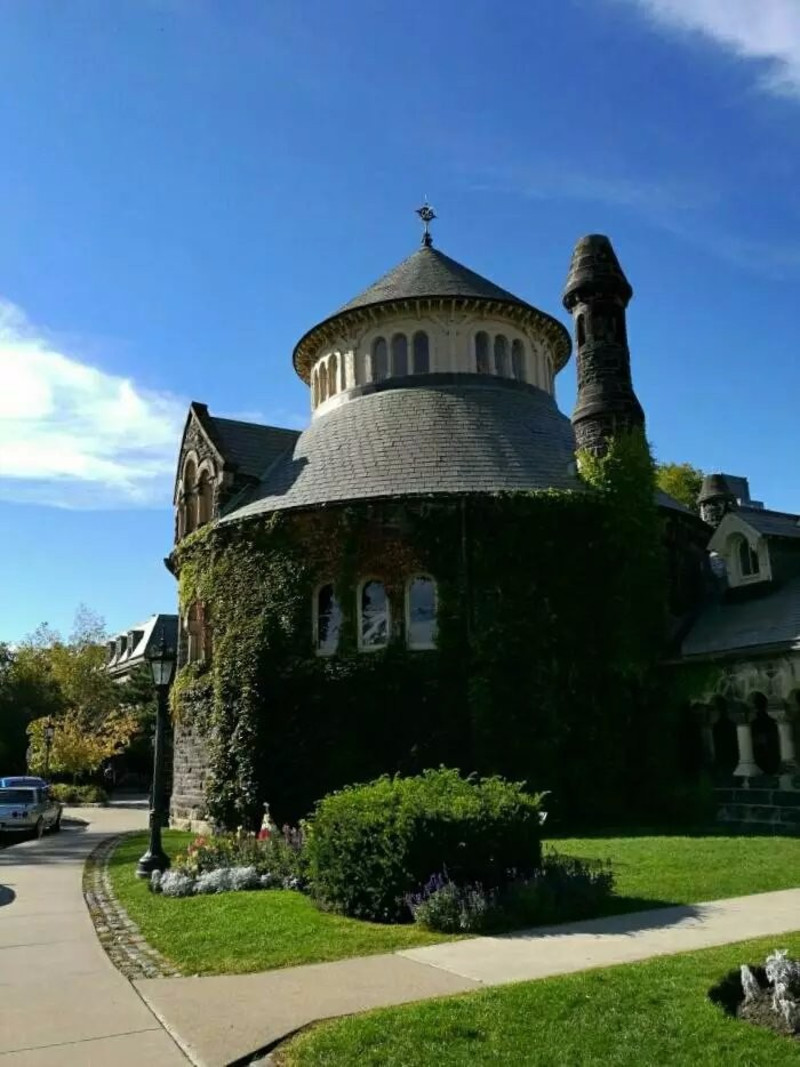 在多伦多,参观了世界闻名的多伦多大学,大学校园内那些古老的建筑在阳光的照射下仿佛都散发着智慧的光芒,或许因为自己对这样的大学一直心存向往,所以特别喜欢这里的建筑和气氛,或许这也是人自身缺什么就想补什么是一个道理吧。