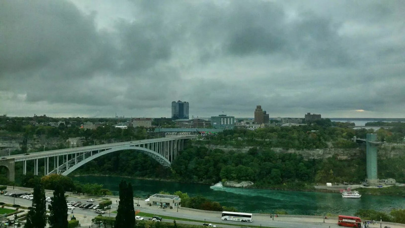 希尔顿酒店的窗外,看到的尼亚加拉大瀑布。那氤氲上升的水气,仿若奔腾的白练,飞舞旋转之间带给人极佳的视觉享受。