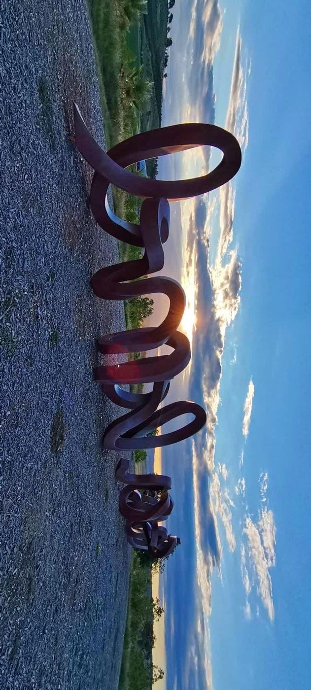 “广阔的棕色土地”雕塑是由钢管组成,这幅作品是为了庆祝澳大利亚知名诗人多萝西娅·麦凯勒创作于1908年的著名诗歌《我的祖国》。