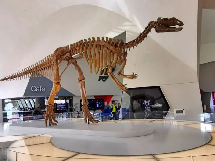 在澳大利亚堪培拉的澳大利亚国家博物馆,人们观看恐龙化石。