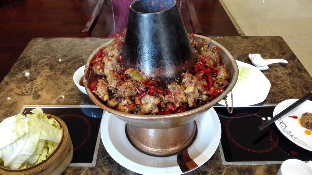 美食:1) 火锅鸡★★★★:火锅鸡是沧州的一道传统名菜,形式上为铜火锅+麻辣鸡块,满满一锅多到不敢搅拌,吃到后期还能煮些配菜,味道挺不错的。