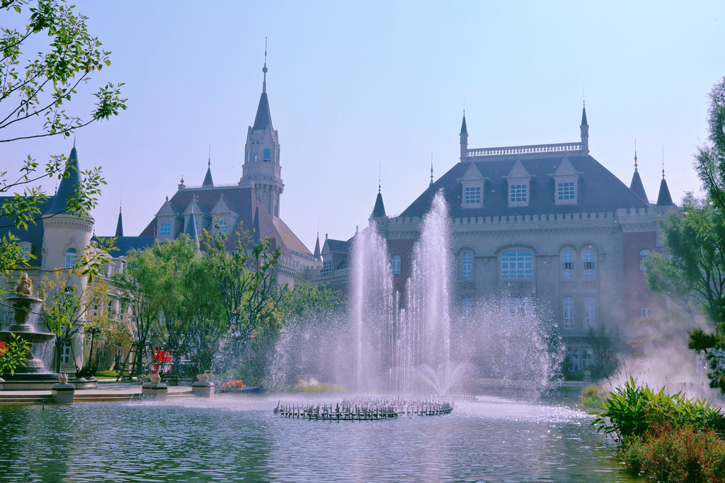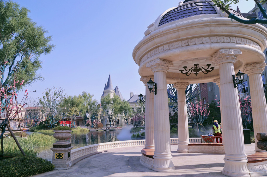 虽已深秋,园区内依旧一派绿意盎然,各种典雅建筑和自然景观让这里成为华丽的皇家园林。