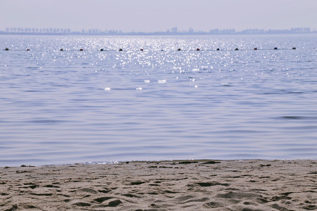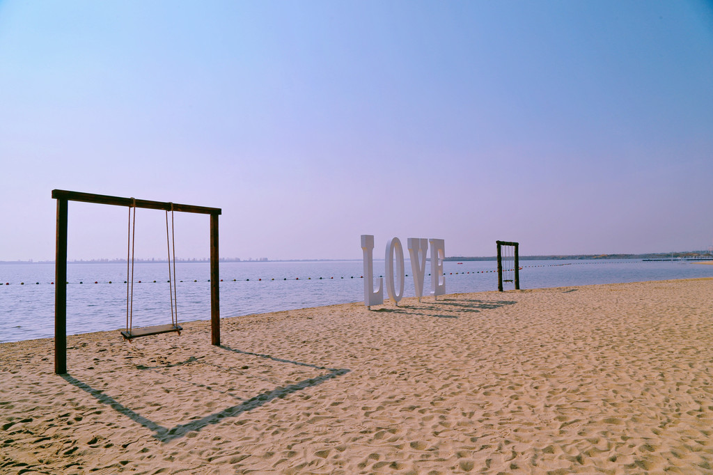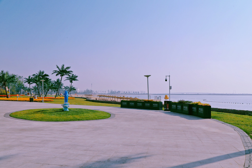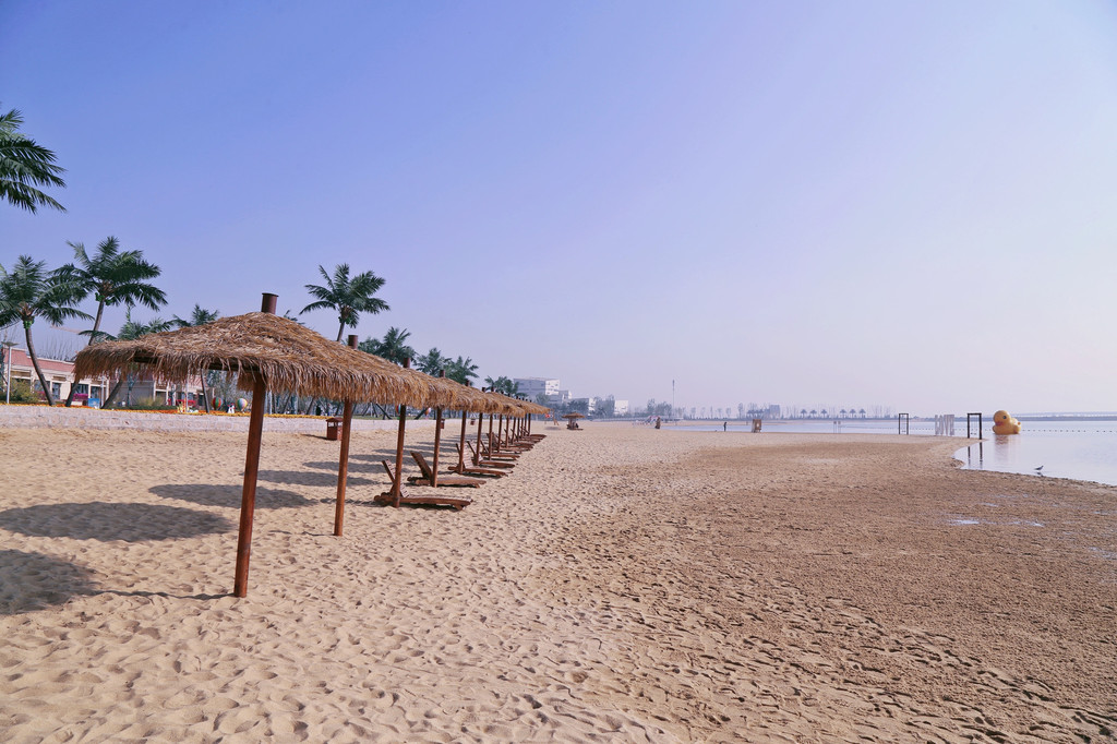 沙滩是由海南的细沙回填,细腻的沙里还带着阳光的温度。