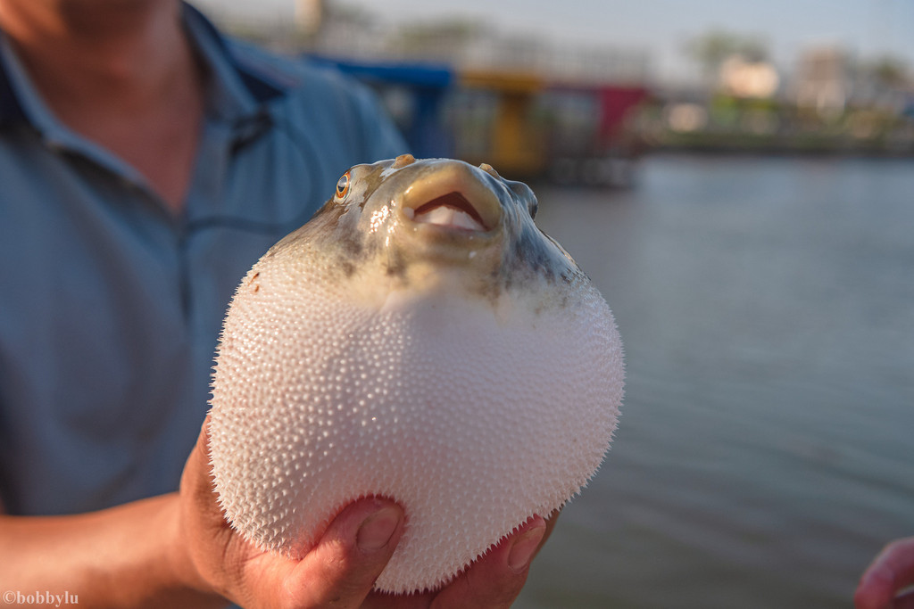 正如图所见,不论大小,人们见到它的时候,总是好奇地想着上手摸摸甚至把玩一番!毕竟,打小就被人称做是气鼓鱼的河豚,无论从脾气还是长相,都太让人喜欢逗逗它了!还是鱼苗的河豚,连巴掌大都没有的时候就学会了动不动就气鼓鼓的,是不是很可爱呢!?