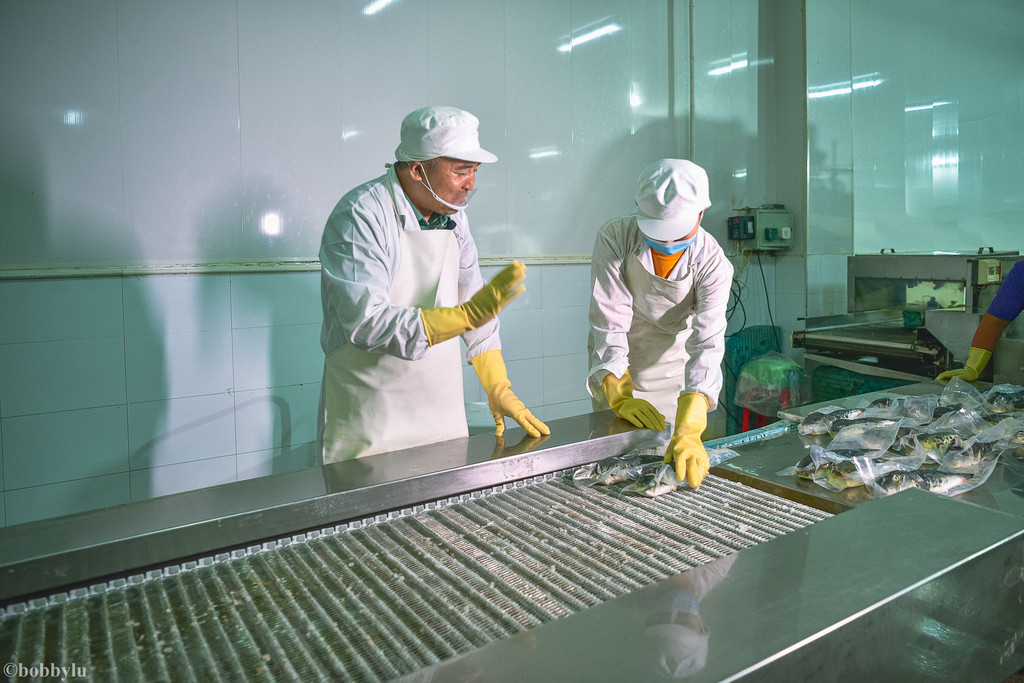看见么?在曹妃甸十里海河豚小镇,是真的可以实现现食现钓的至鲜品味东方红鳍豚的完美体验。但并不是所有人都有这样的机会的,毕竟,自驾两小时左右,来到这里品尝美味的东方红鳍豚,还要在大太阳底下自己垂钓或撒网捕捞,不如吹着空调坐等美味上桌来的实惠。但十里海河豚小镇每出品一条河豚是怎样保持了它最为原始也最为鲜美的味道呢?这就与曹妃甸区多达34座冷冻加工厂有着密不可分的关系!