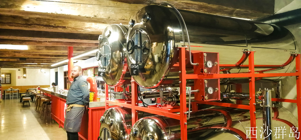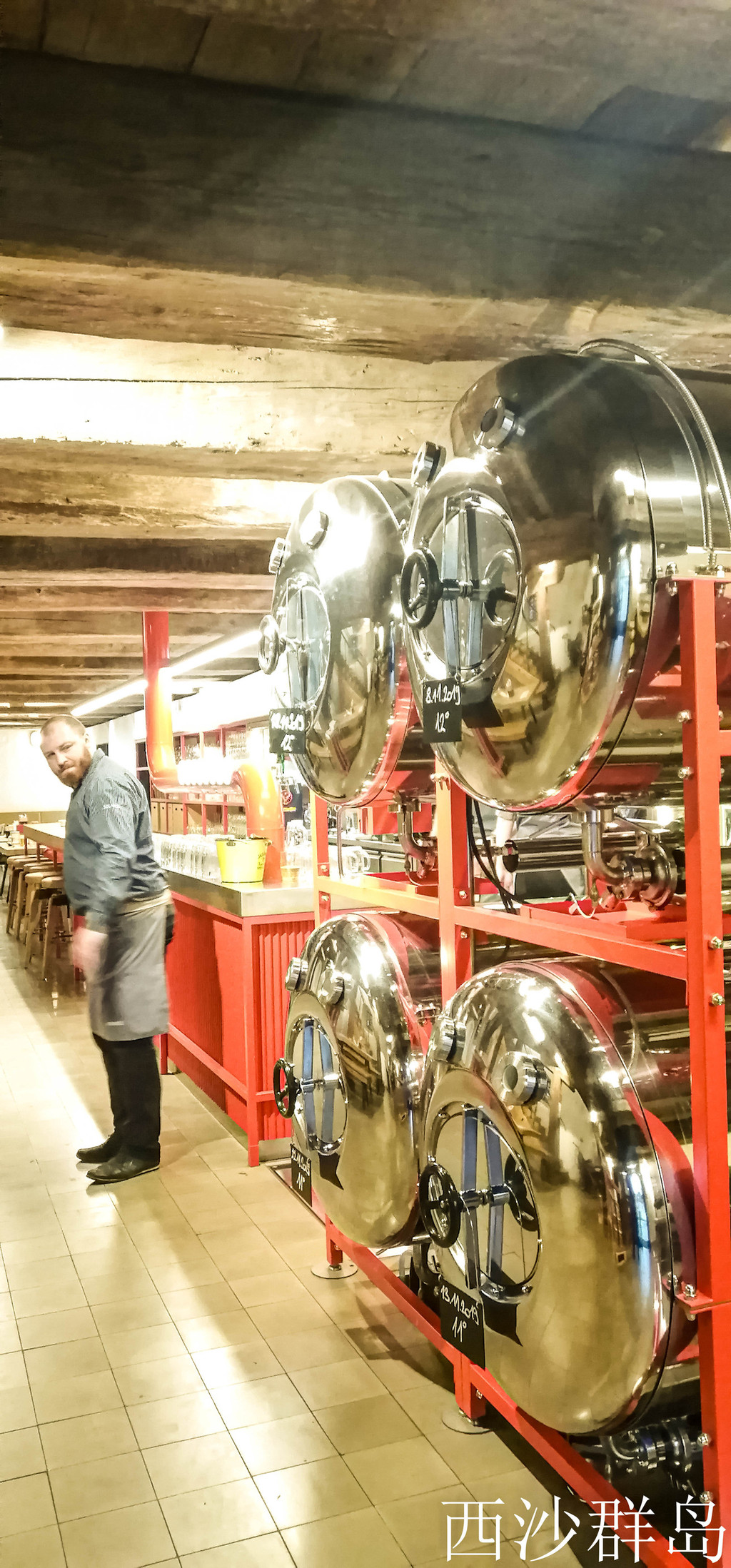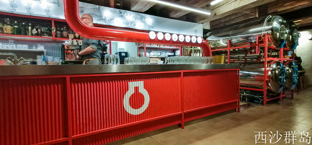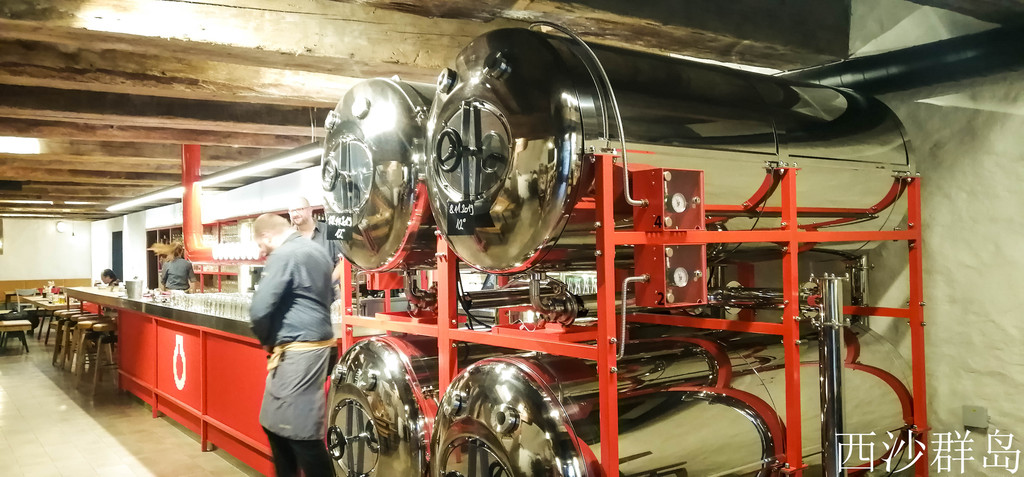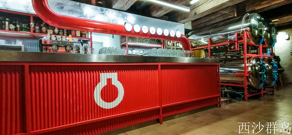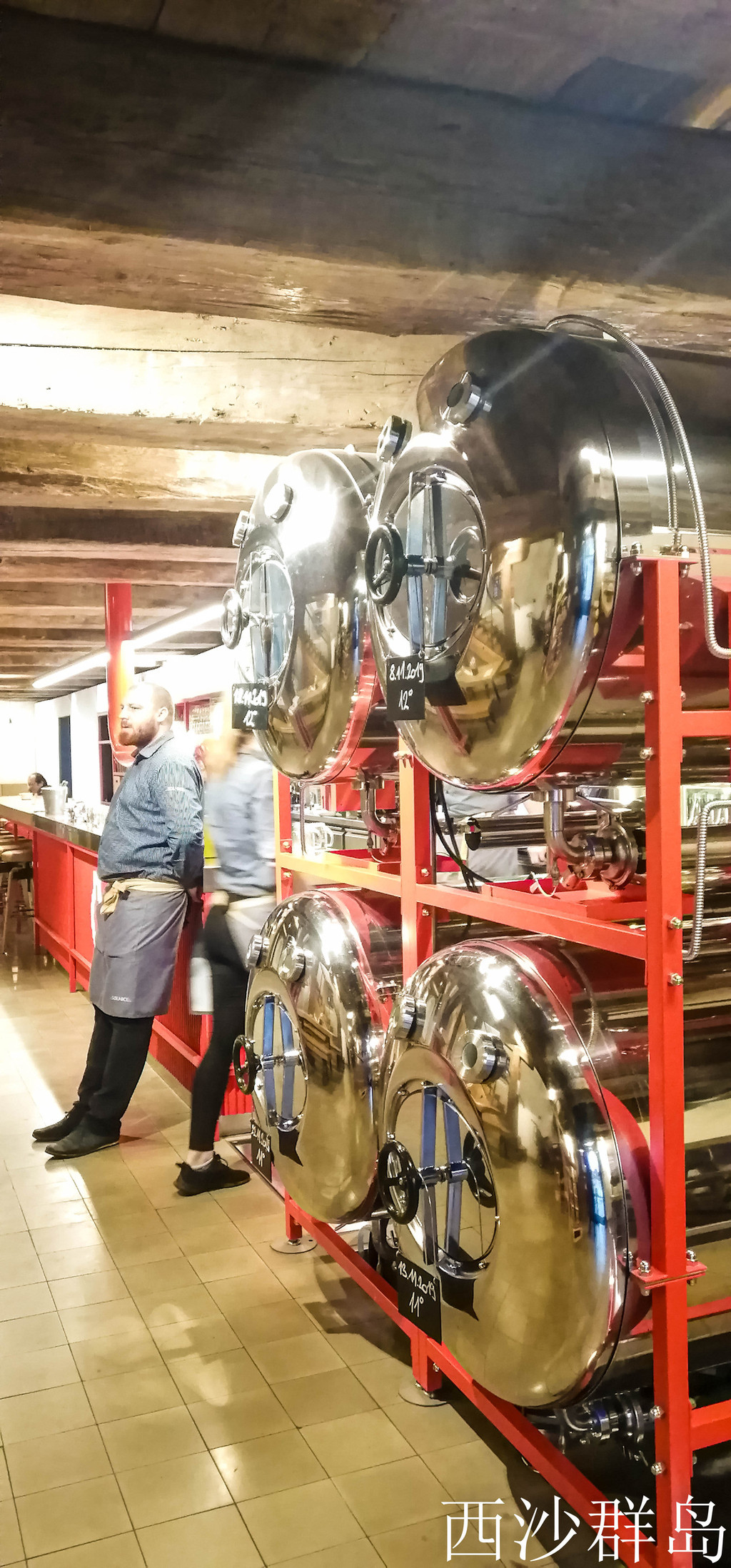 不算小型的啤酒酿造设备,4个晶亮的不锈钢储罐,鲜红的管道,见过最精致的啤酒屋,淡淡的麦香,十分挑逗味蕾。
