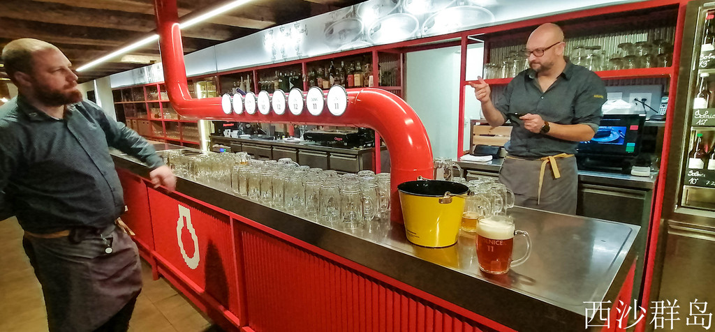 啤酒品种很丰富,可惜我们看不懂菜单,挑选两杯编号Lager 11 的生啤,应属底层发酵啤酒的Lager 麦汁浓度11°的生啤。