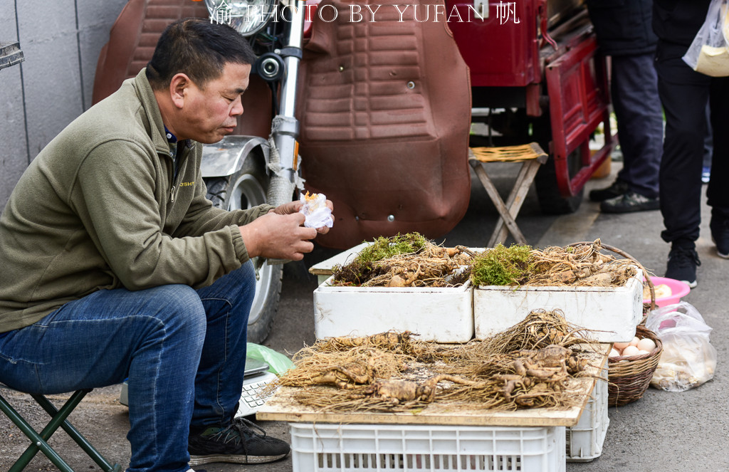 比如说这里的人参就特别多,在南方,人参往往是以克为单位售卖的,但是这里的人参却是以斤为单位销售的,而且这里一斤的价格甚至不比南方一克的价格贵多少,便宜的只要30元一斤(50、100、150、200、甚至更贵的也有),而且这些人参大都随意的堆在一起,像萝卜一样供人挑选,有的甚至直接用一张烂胶纸垫着、堆在地上销售,然后老板像卖其它蔬菜、水果一样叫卖“走过路过,不要错过,新鲜的人参,便宜卖了,30元一斤……”,看上去就像卖打折的青菜一样,真羡慕当地的老白姓,靠山吃山,可以把名贵的人参当蔬菜一样吃。