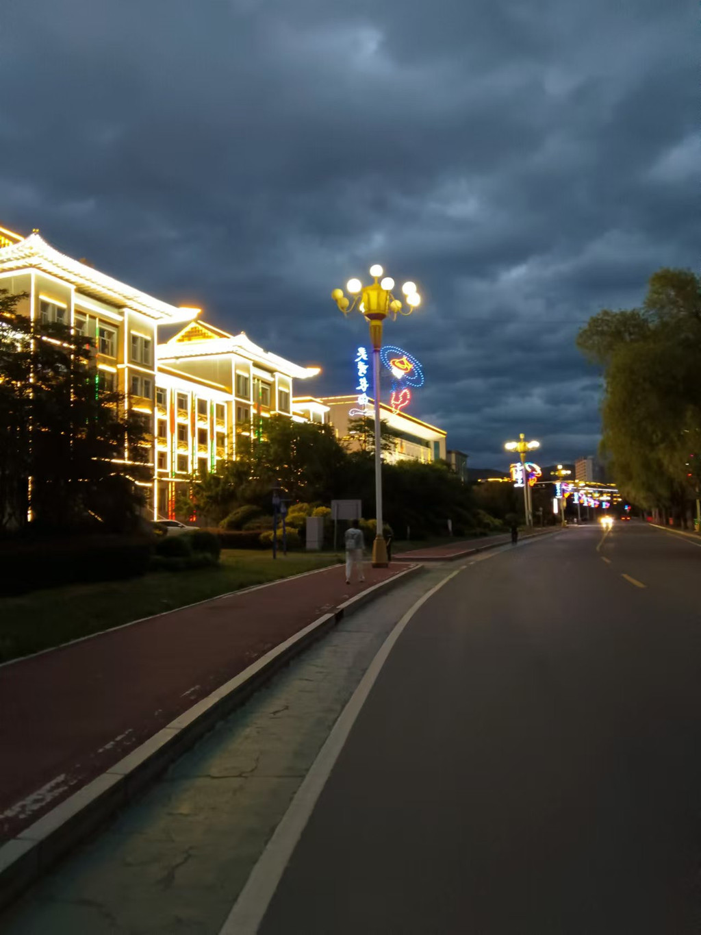 望天鹅景区,可惜目前没有开放,在临江与长白的交界处,大家留影留念。晚饭前我们赶到了长白朝鲜族自治县,入住宾馆,用晚餐后,出去散步的时候,观赏了长白县的夜景,滨江公园的鸭绿江对岸就是邻国朝鲜啊。