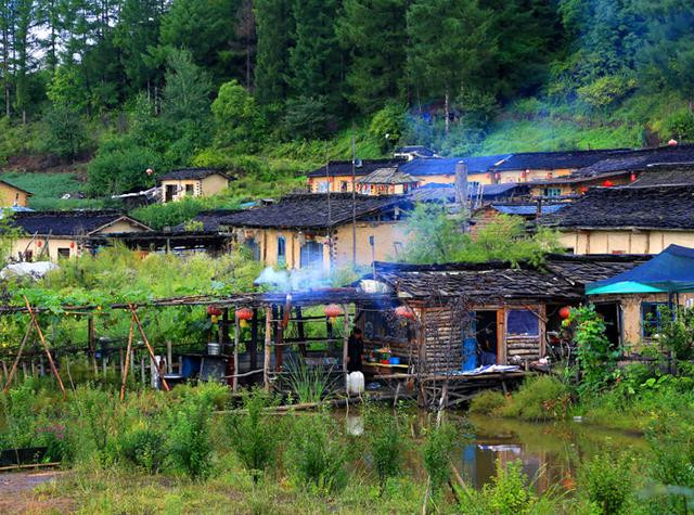 锦江木屋村现有村民21户,村中间有一条石砌路由东至西约1000米,约60所村民木屋分布在村中道路的南侧与北侧。