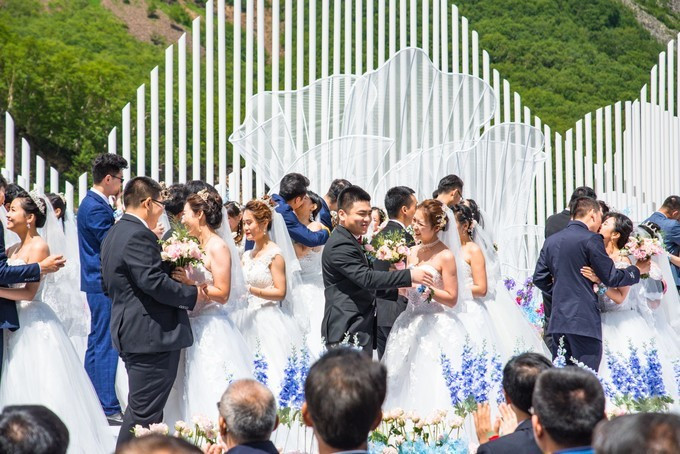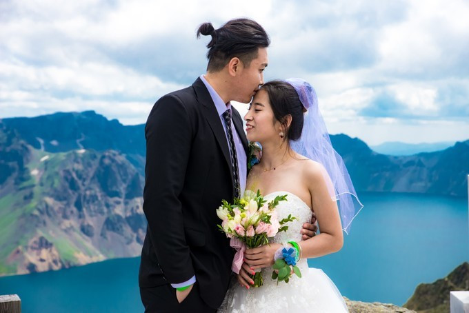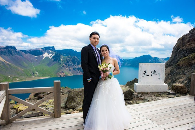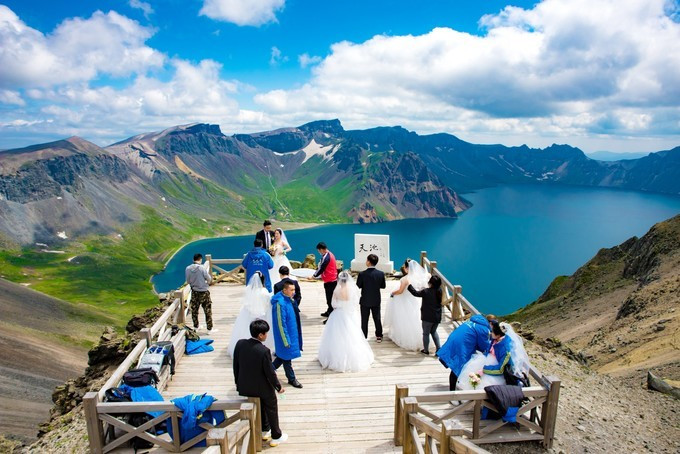 第二次来到 长白山 ,除了完成上次没有看到天池的遗憾。幸运的是见证了一场意义非凡的高山集体婚礼。在“长相守、到白头”的 长白山 瀑布脚下温泉广场,洋溢着浓浓的喜气与温馨浪漫。来自全国各地在抗疫一线凯旋归来的50对“最美逆行者”伉俪,面对“吉 尼斯 世界之最”——落差68米的世界最大火山湖瀑布相拥宣誓,相爱一生,珍惜彼此。