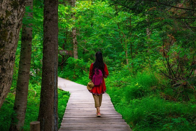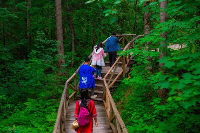 整个花海栈道是蜿蜒起伏的,一眼看不到头。高处和地处的景色也不尽相同,红的、黄色、紫的、白的在岳桦林间竞相绽放,这些都是 长白山 野生的花卉,偶尔还会窜出几只可爱的小动物,带来不一样的惊喜。无论是远望花海的大景观,还是近看梅朵花的细致处,都能带来视觉上的享受。