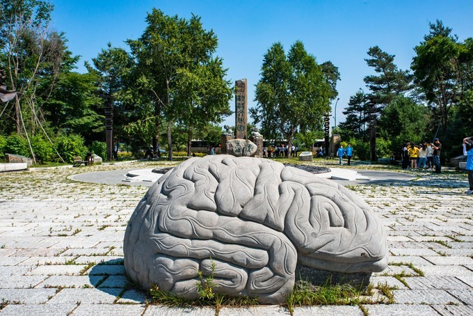 美人松、火山粗面岩 石柱 以及由百根 石柱 布局而成的河图洛书被誉为园中三宝。火山粗面岩 石柱 是距今7000多万年前火山喷发岩浆冷却收缩而形成。由百根 石柱 按河图洛书规律列阵,直指天宇,展示了古老中华文化的博大精深。这园中“三宝”各自以旷世的绝学续写着 长白山 文化的前世今生。