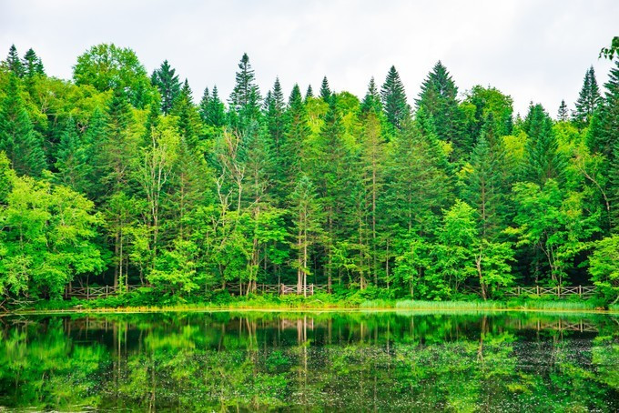 周围是茂盛的岳桦林,所以绿渊潭就因岳桦荫翳、潭水碧绿深窘而得名。