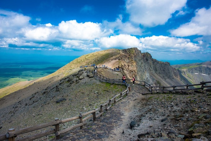 长白山 天池是一座休眠火山,火山口积水成湖,夏天池水比天还要蓝,最为惊艳。只不过都说 长白山 天池十次九不遇,海拔两千米的天池天气变化快,经常有浓雾,运气不好的话,爬到山顶只能望而兴叹。