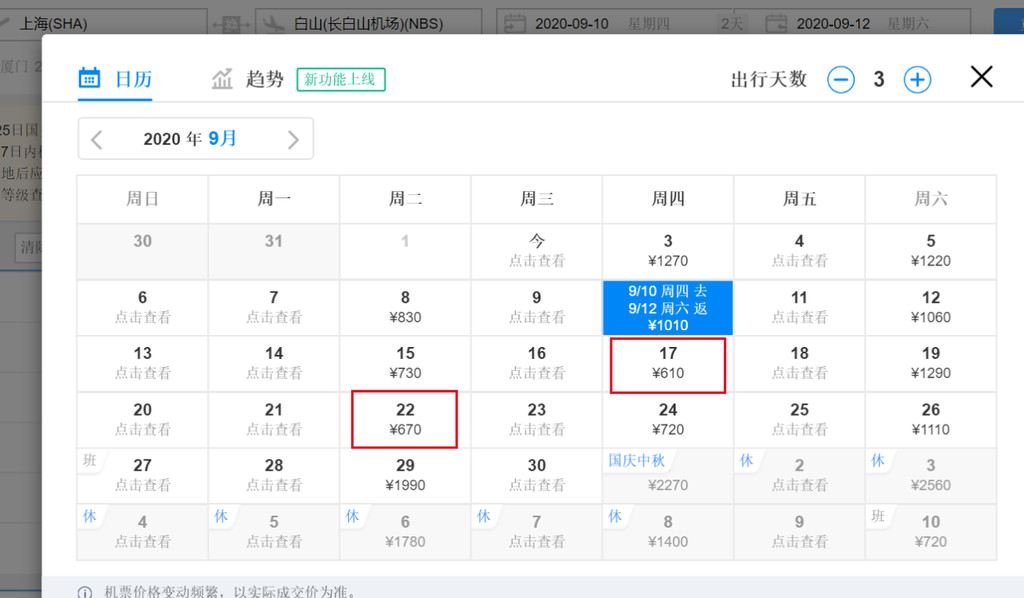 而在每年的9-10月,长白山将会穿上色彩斑斓的外衣,红的、绿的、黄的......五颜六色,颜值超高。这也是一年中,体验长白山性价比至高的时候,上海往返机票最低只要600起,打个飞的来度周末,真的可以说走就走。