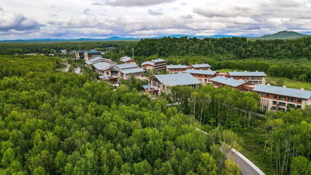 酒店被莽莽林海覆盖,宛若森林里长出来的神仙酒店,住在这里,你呼吸到的每一口空气,都纯净得像“空山新雨后”。
