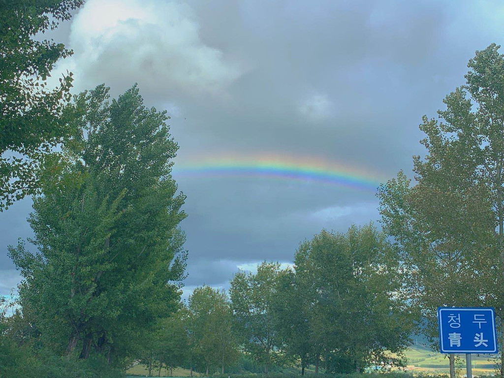 回程路上,看到了一段特别大,特别完整的彩虹,心情异常好。果然,最美的风景永远是在路上。