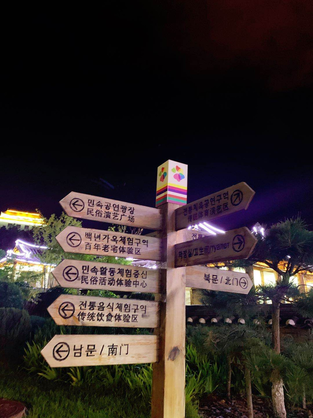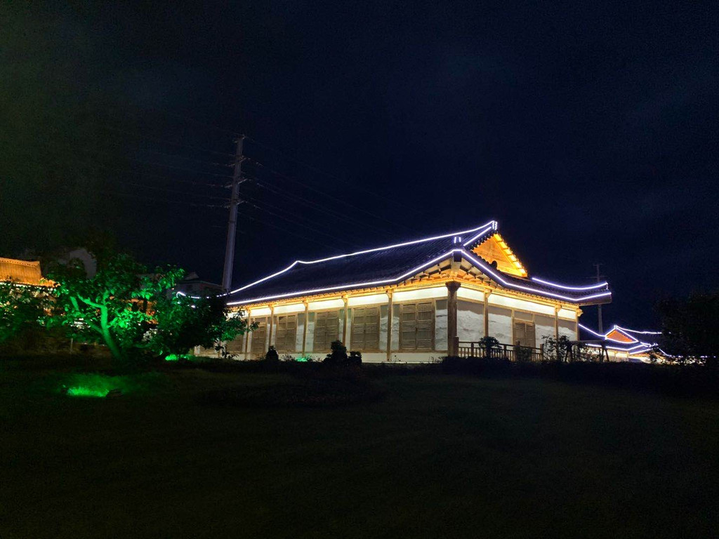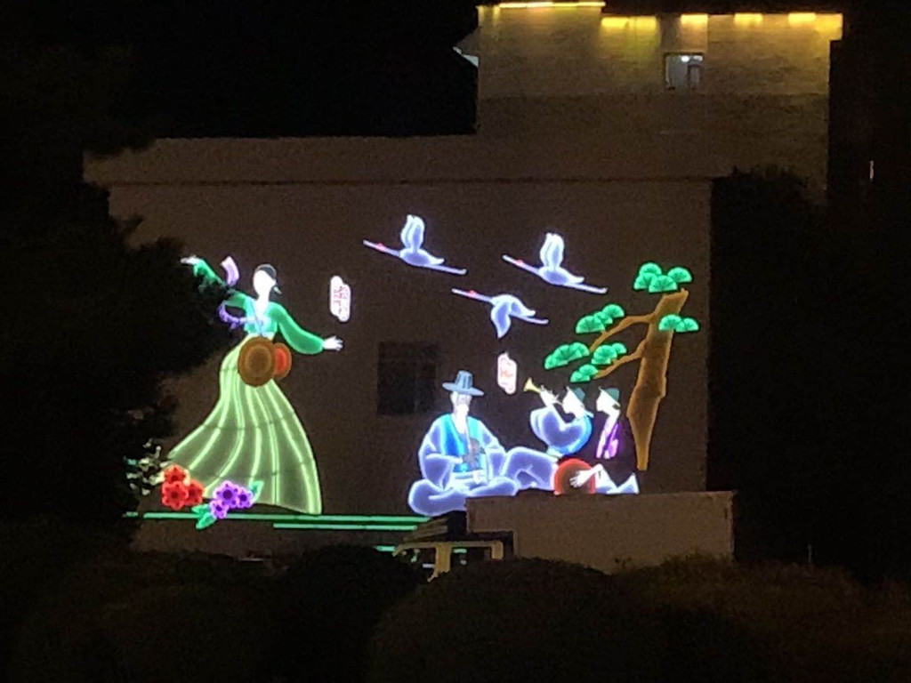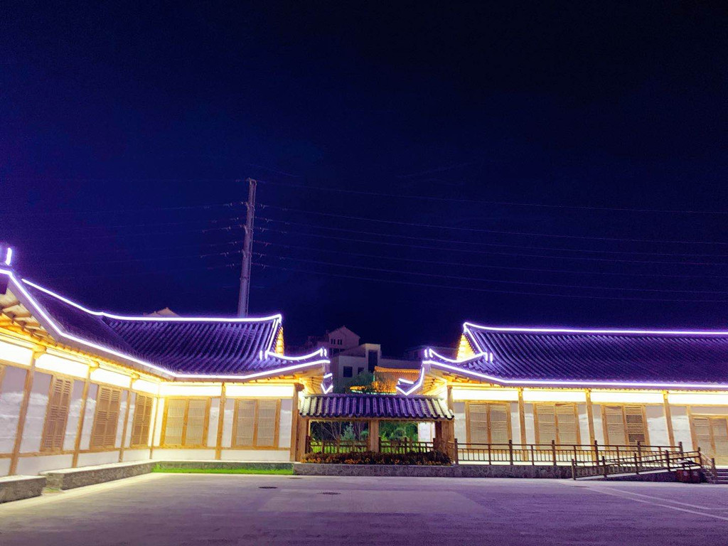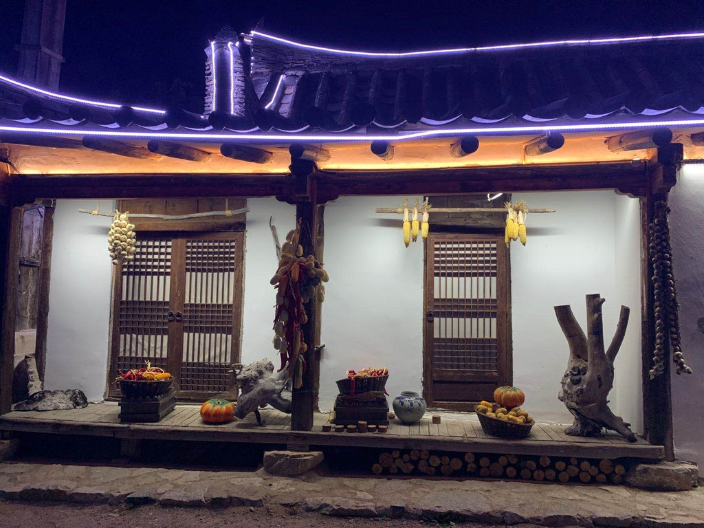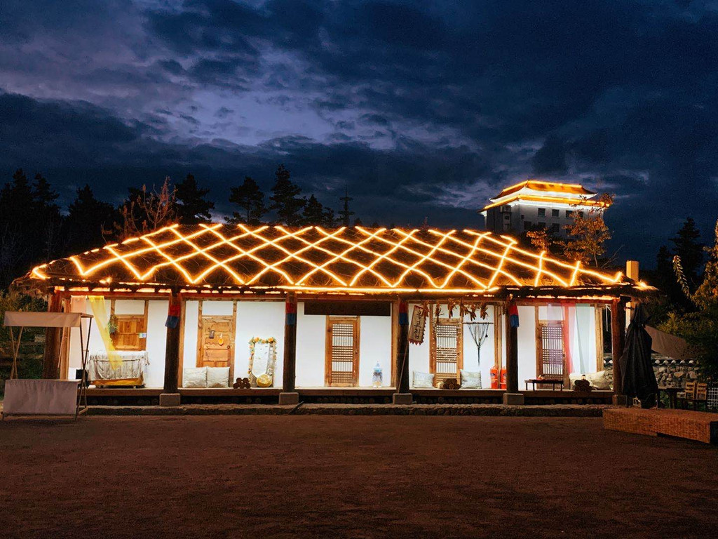 在帽儿山脚下的民俗园。建筑风格完全是朝鲜时代的那种,还有很多具有代表性的“渔夫之家”,“铁匠之家”“富有之家”等等,很出片~~可惜我们是晚上去的,没有阳光洒下来的美,但当灯光亮起,安静的园内,别有一番风情。我个人特别喜欢园外的路灯,朝鲜特有的象帽造型,仿佛舞者欢快跳起,勾勒出的绚丽花环。