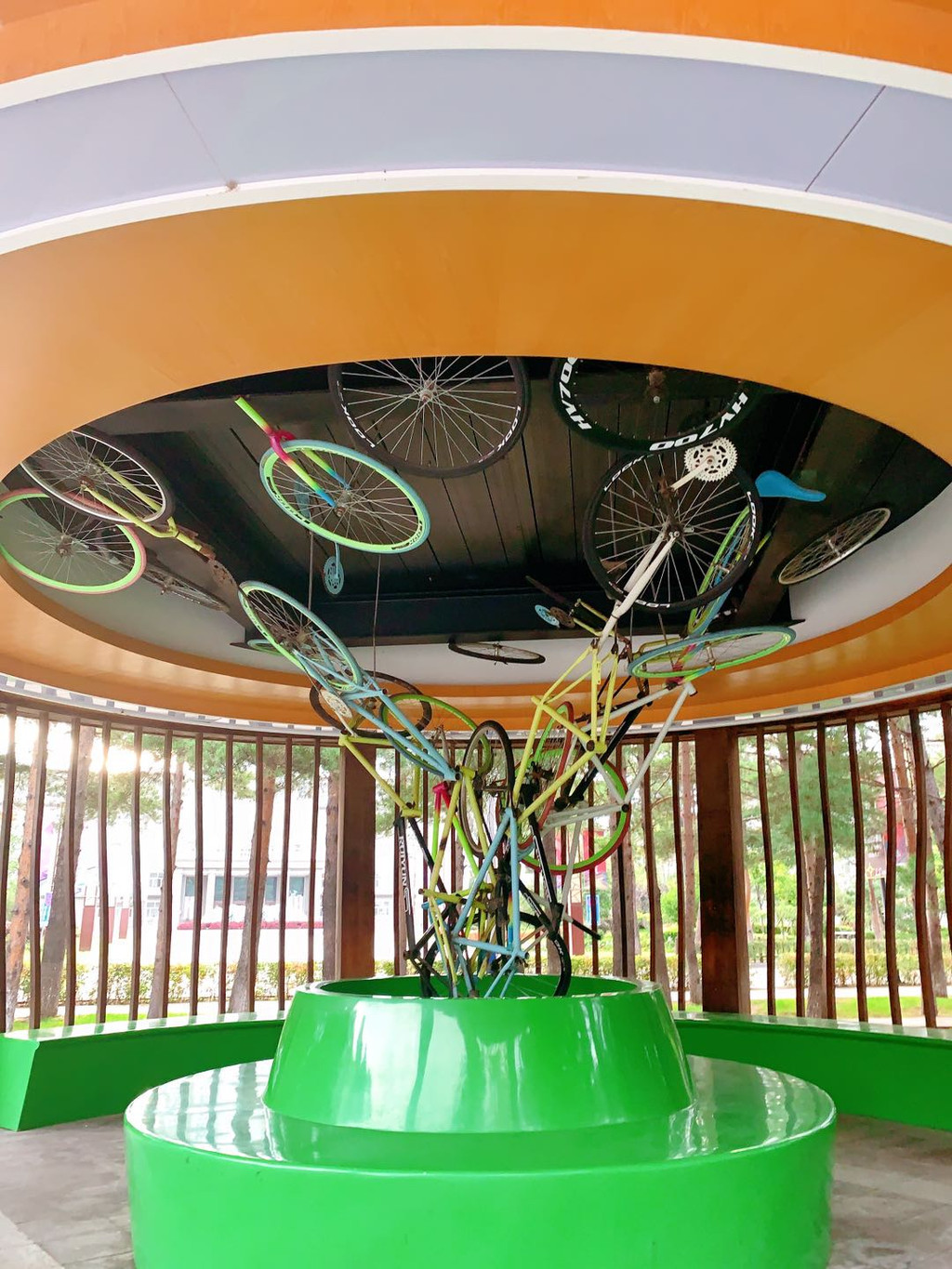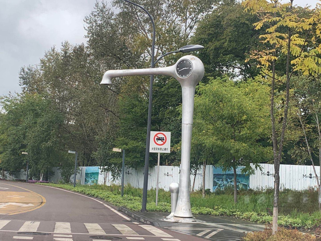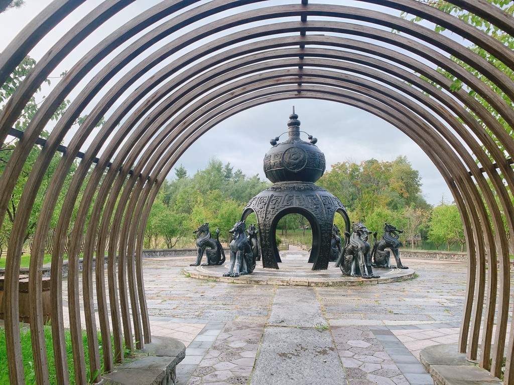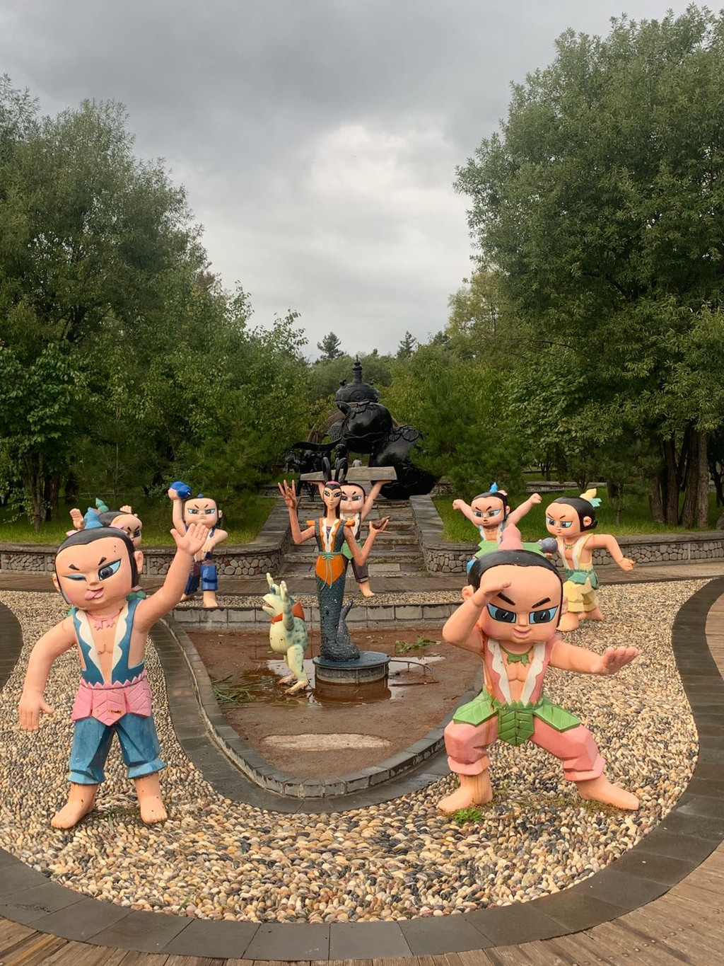 里面各种雕塑风格都有,甚至还有葫芦娃。我们来的时候,树叶还没黄,等到10月下旬,满眼黄色,一定更美。